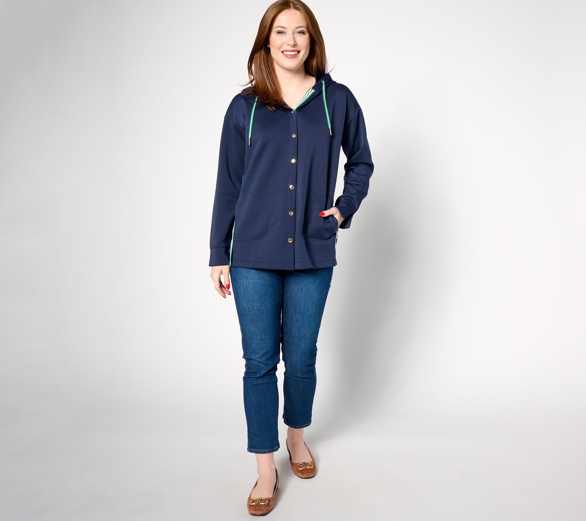 This snap-front tunic is a lovely casual topper that fits in with all your weekend activities. From Isaac Mizrahi Live!TM.