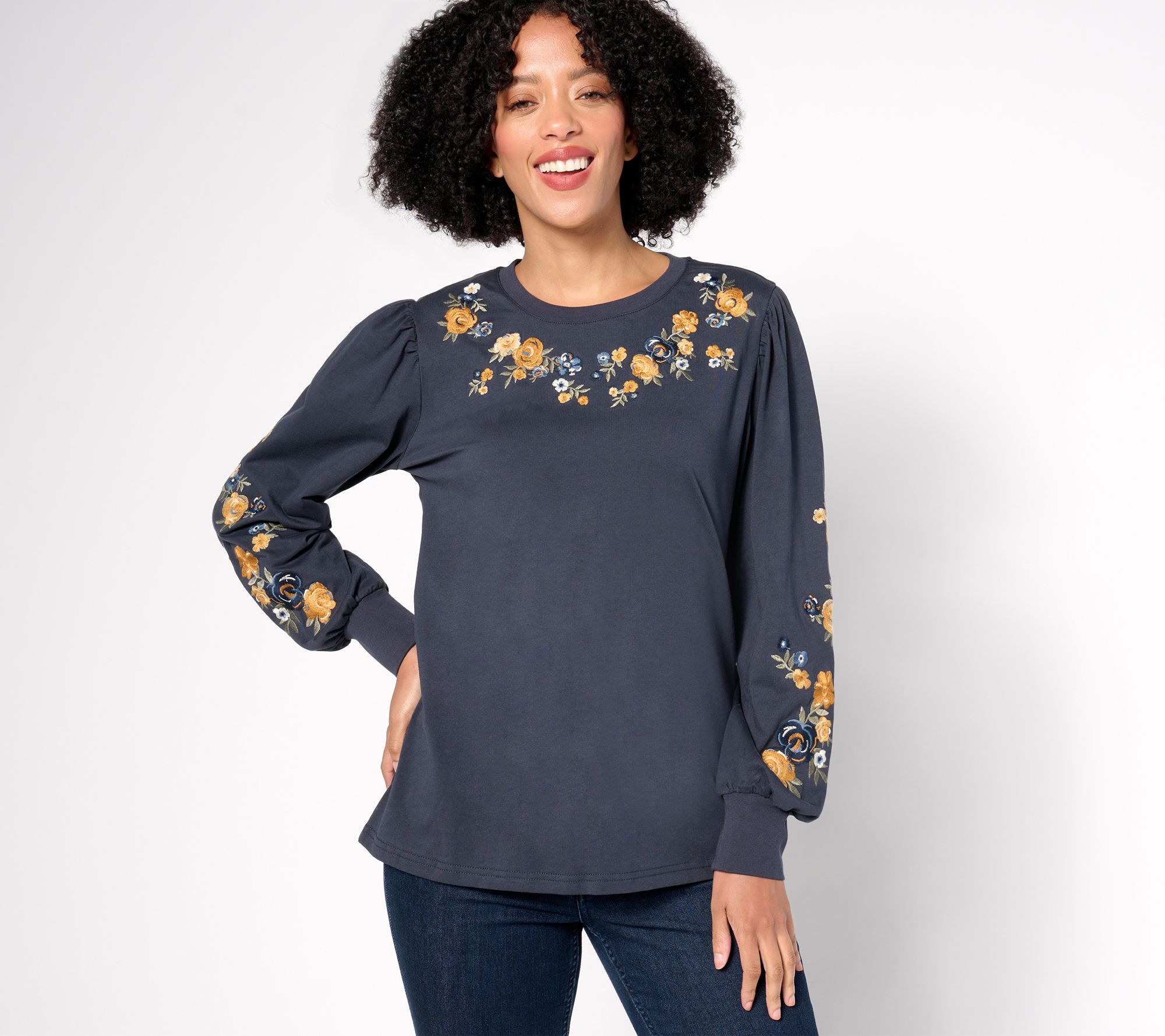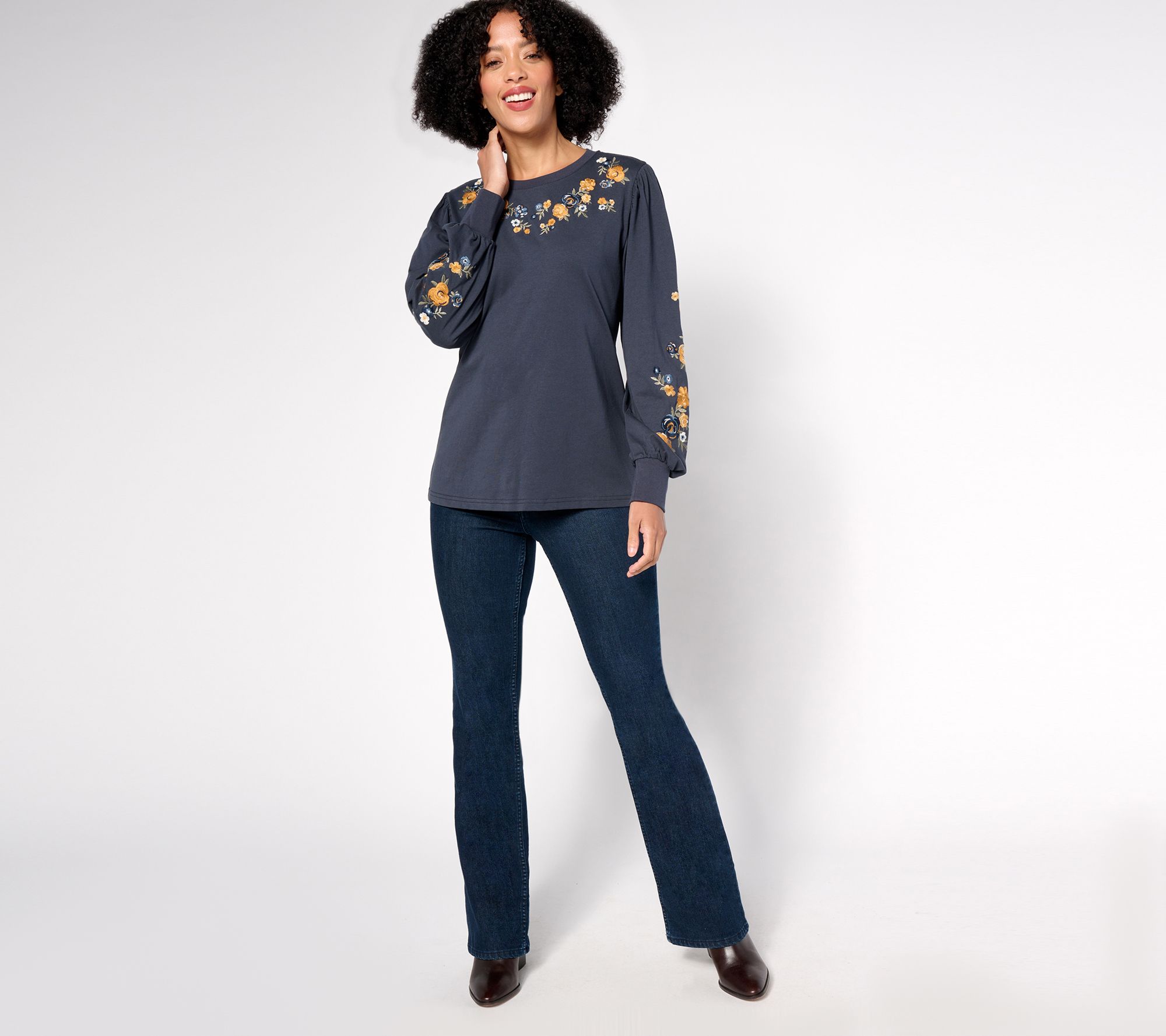 Adorned with a delicate embroidered pattern, this long-sleeve top offers a semi-relaxed fit for effortless elegance and comfort. Spend your casual outings or in-office days in this sophisticated and stylish design. From Driftwood Jeans.
