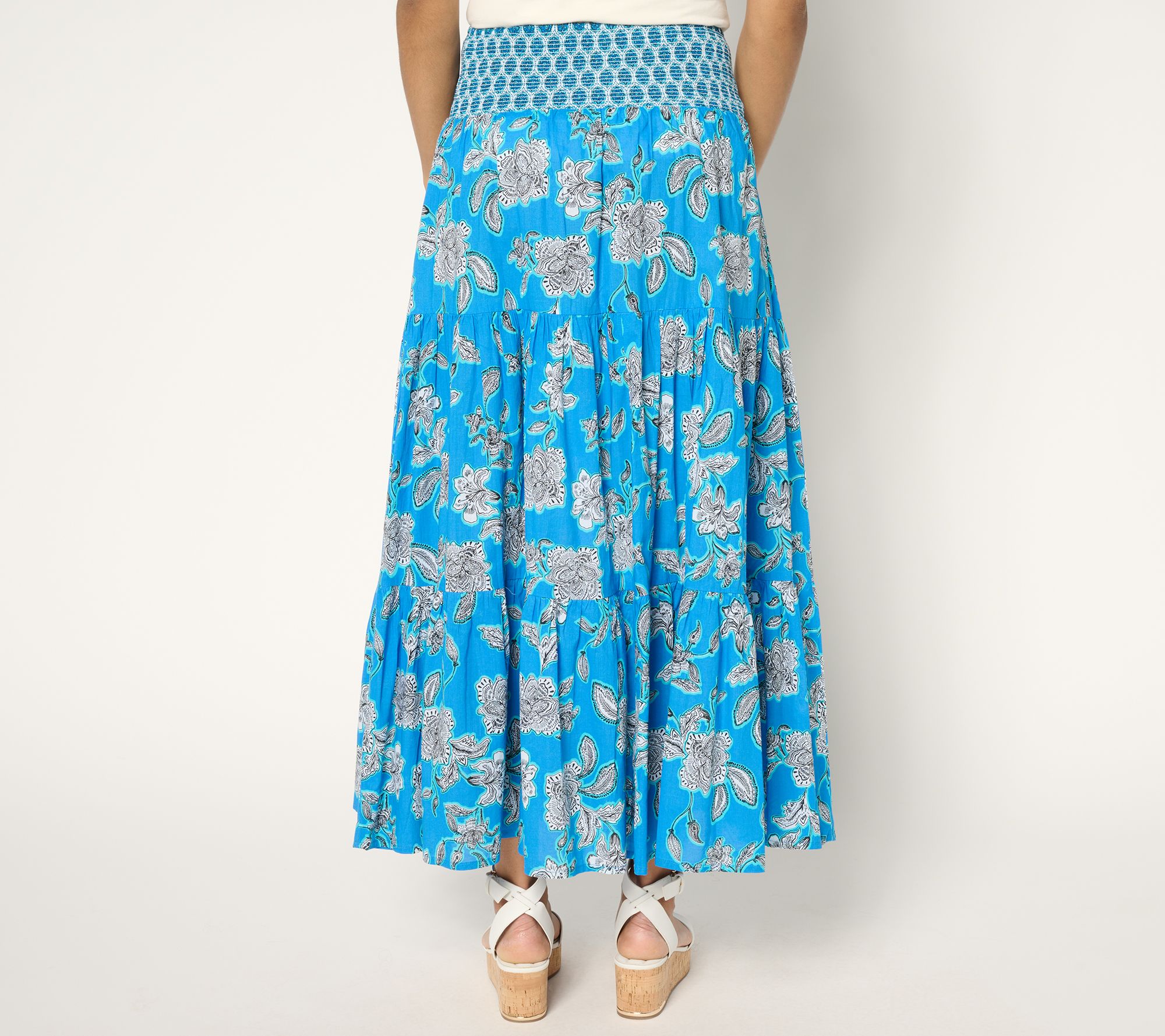 Susan Graver PURE Petite Printed Cotton Smocked Waist Maxi Skirt