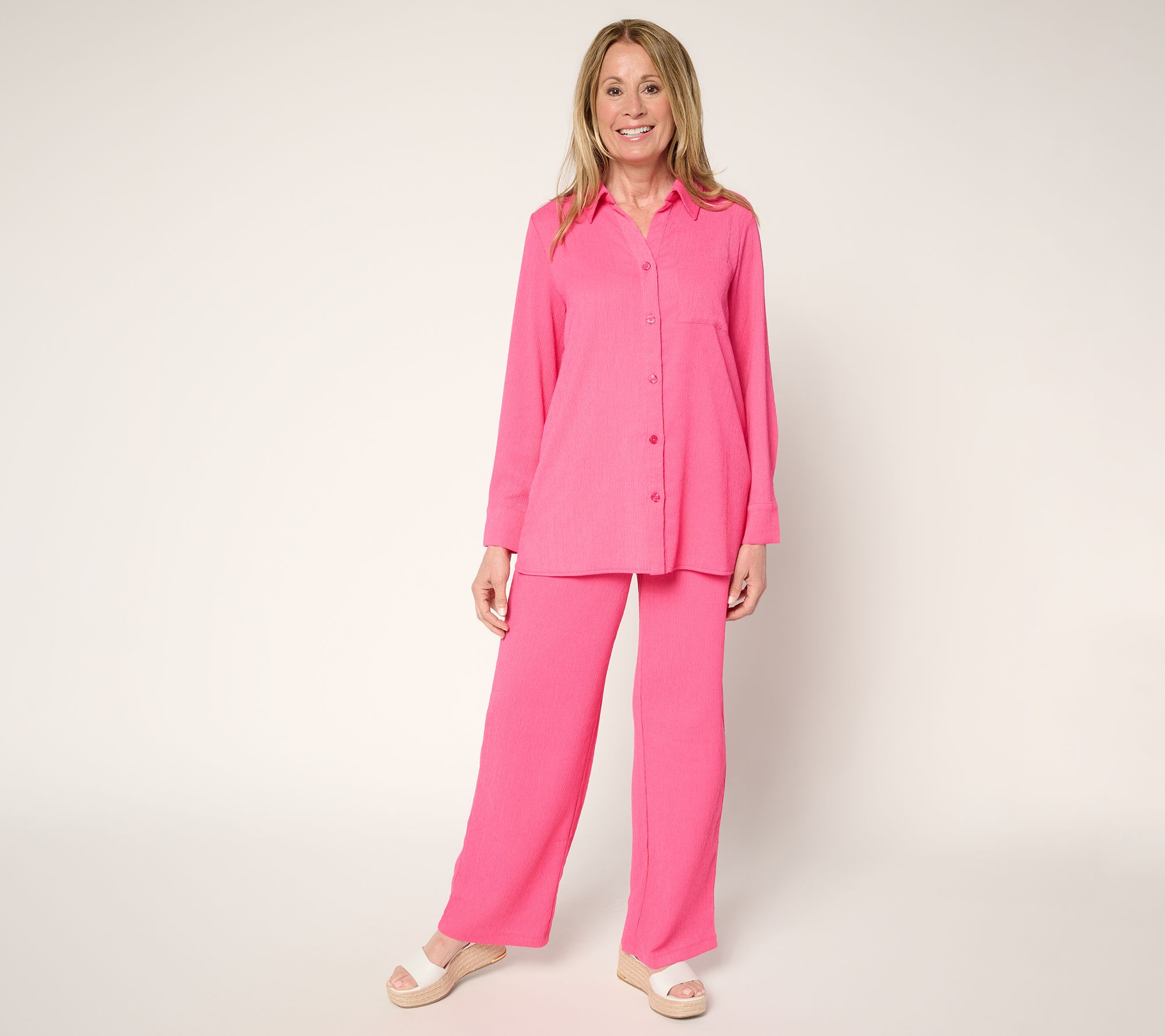 If tropical sand is in your sights, be sure to tuck these crinkle textured pull-ons into your carry-on. Their airy wide-leg attitude is ideal for breezy sun-filled strolls and alfresco seaside dinners. And once you're stateside, slip into them whenever you're craving that vacay state of mind. From Brandis Dress Out Loud.
