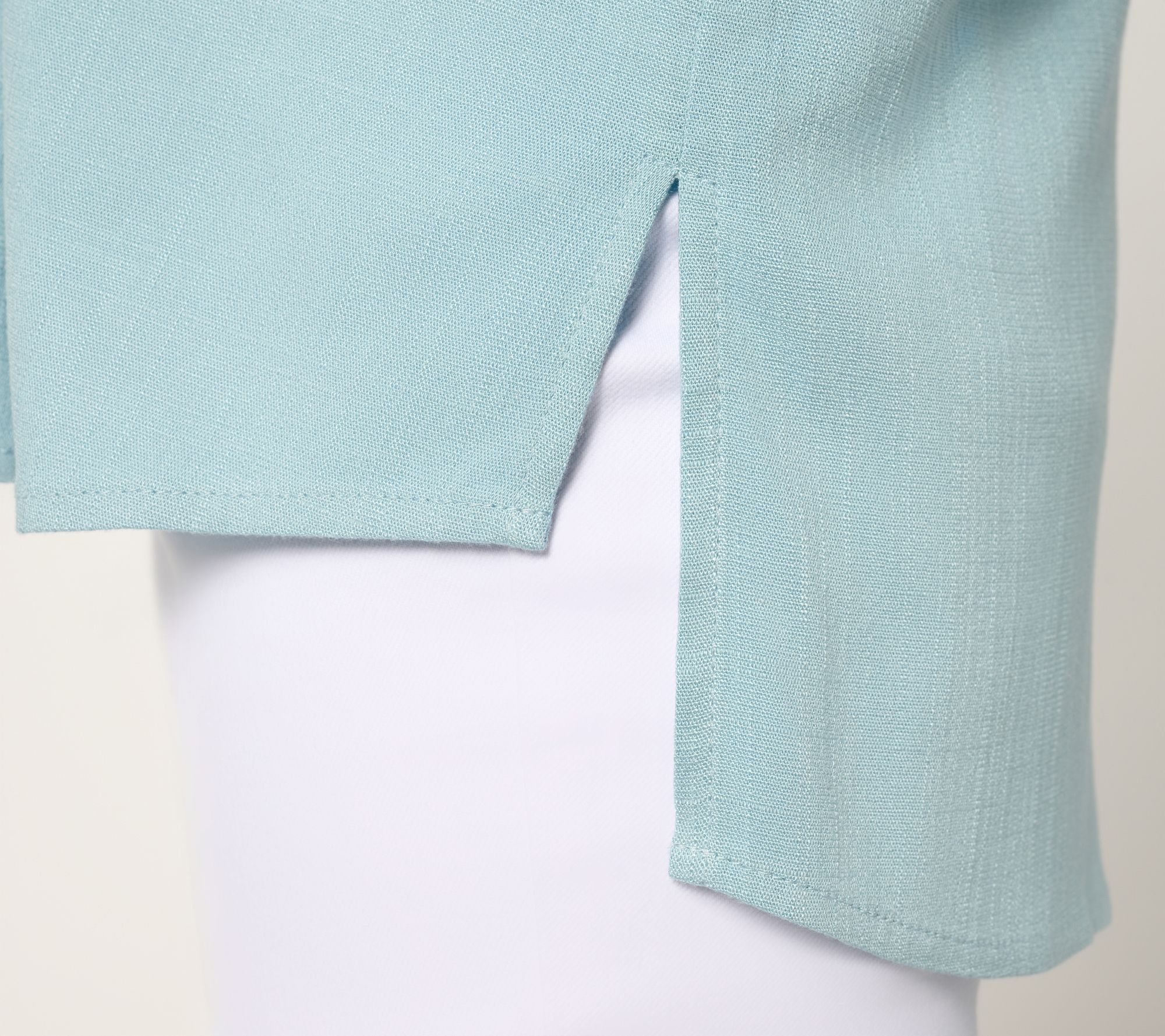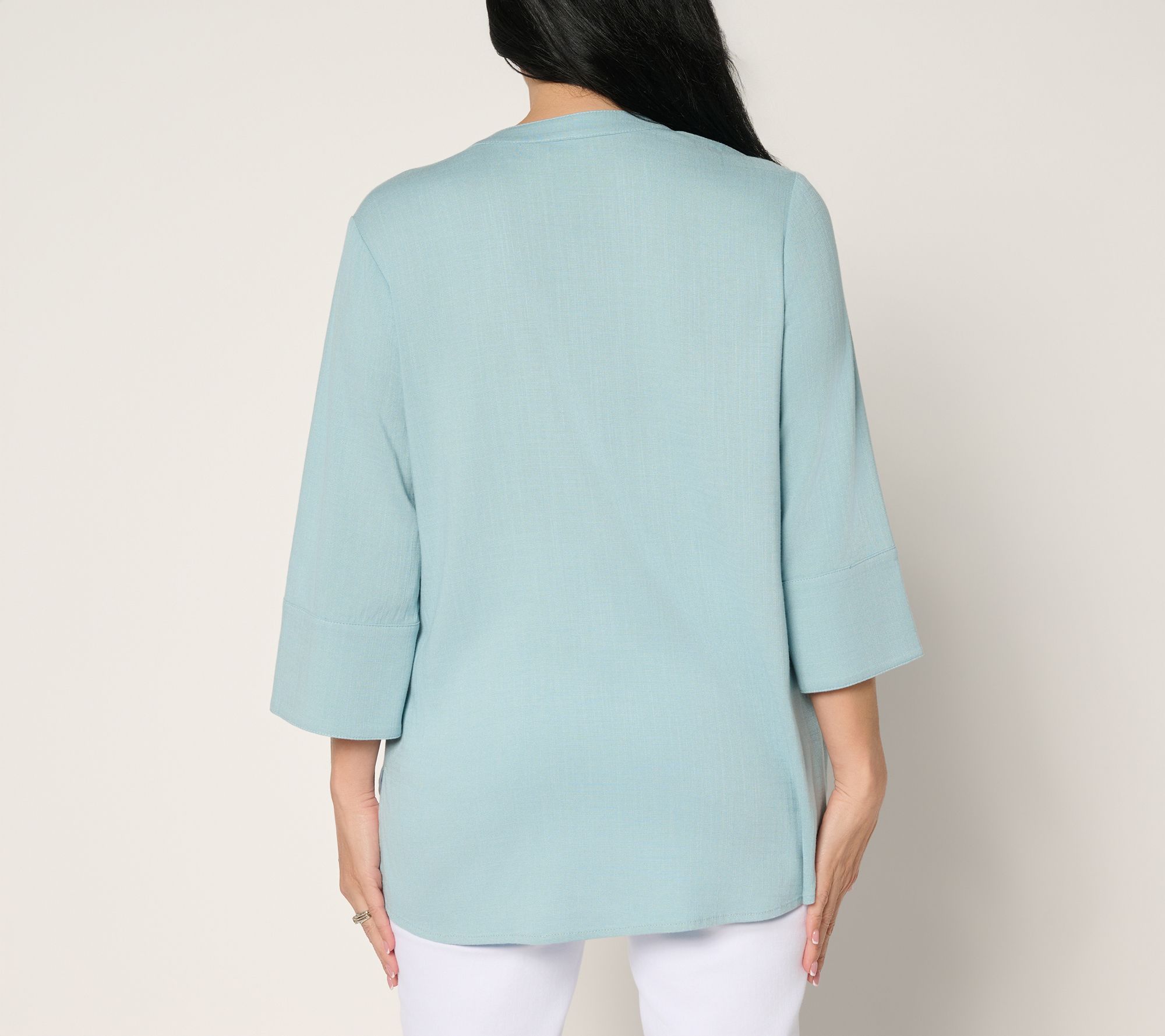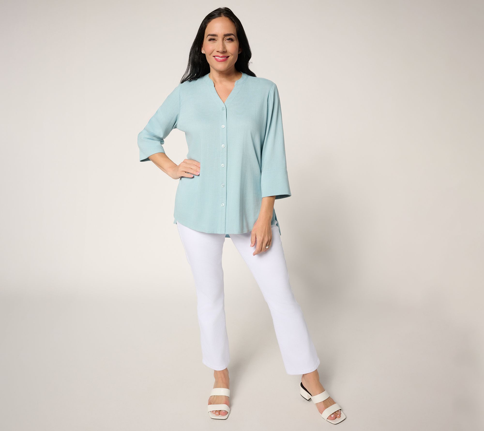 Freshen up your look with this stretch-woven button-front tunic, designed for easygoing days and crisp moments alike. The collar and cuffs add a tailored finish, while a separate placket and side slits deliver breathing room and subtle sophistication to your outfit rotation. Pair it with slim pants for a polished vibe or keep it casual with jeans and flats. From Women with Control®.