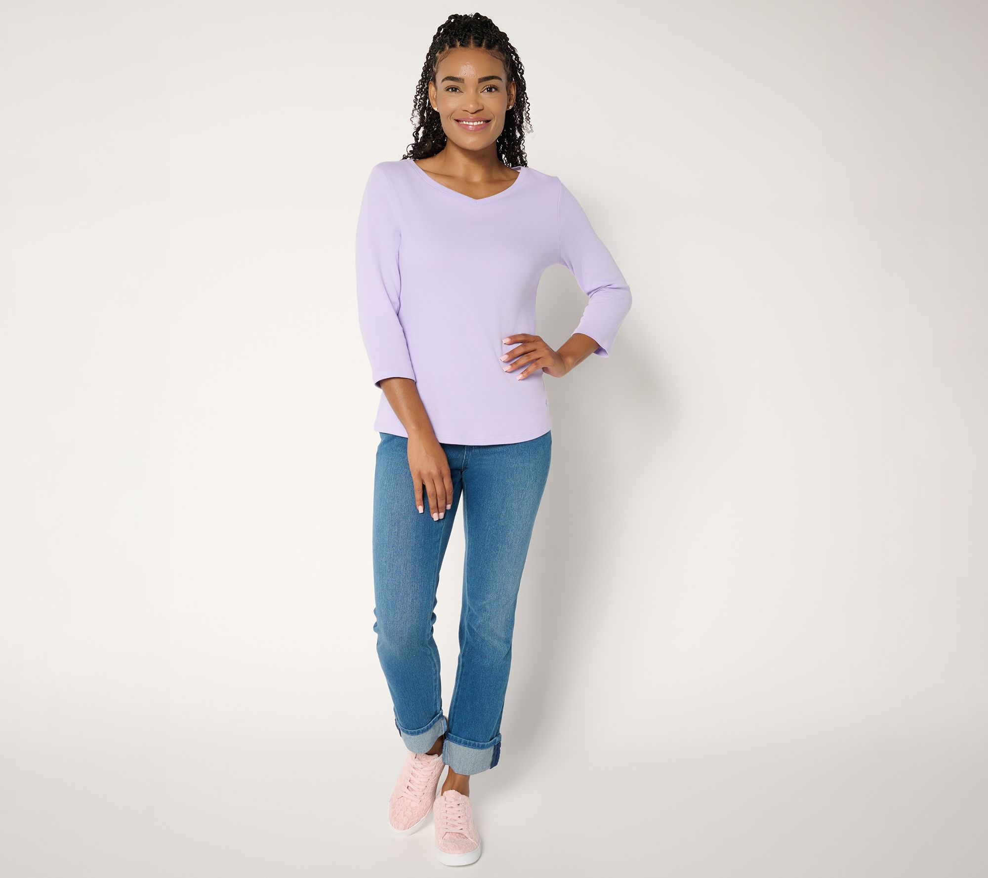 Game-day plans or weekend errands, these pull-on cuffed jeans from Kim Gravel bring a sporty spirit to your style. The Flexibelle fabrication moves with you (handy when catching that Hail Mary pass!), while the ankle-length cut and turned-back cuffs keep things fun and casual. Pair with your team tee for a look that's ready for kickoff. From Belle by Kim Gravel.