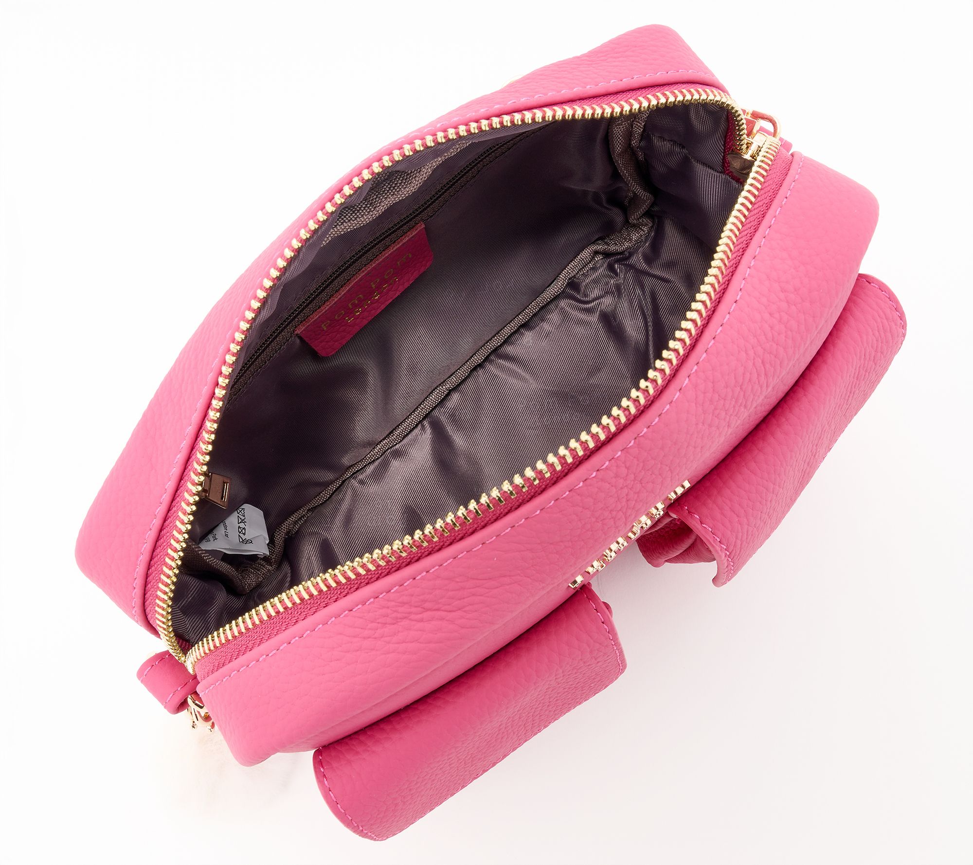Cargo cool. This versatile utility-inspired crossbody effortlessly transitions from a daytime adventure to an evening out. With three interchangeable straps (and two adorable pom-poms!), you can easily perfect your look for any occasion, whether you're exploring the city or heading out for dinner. From Pom Pom London.