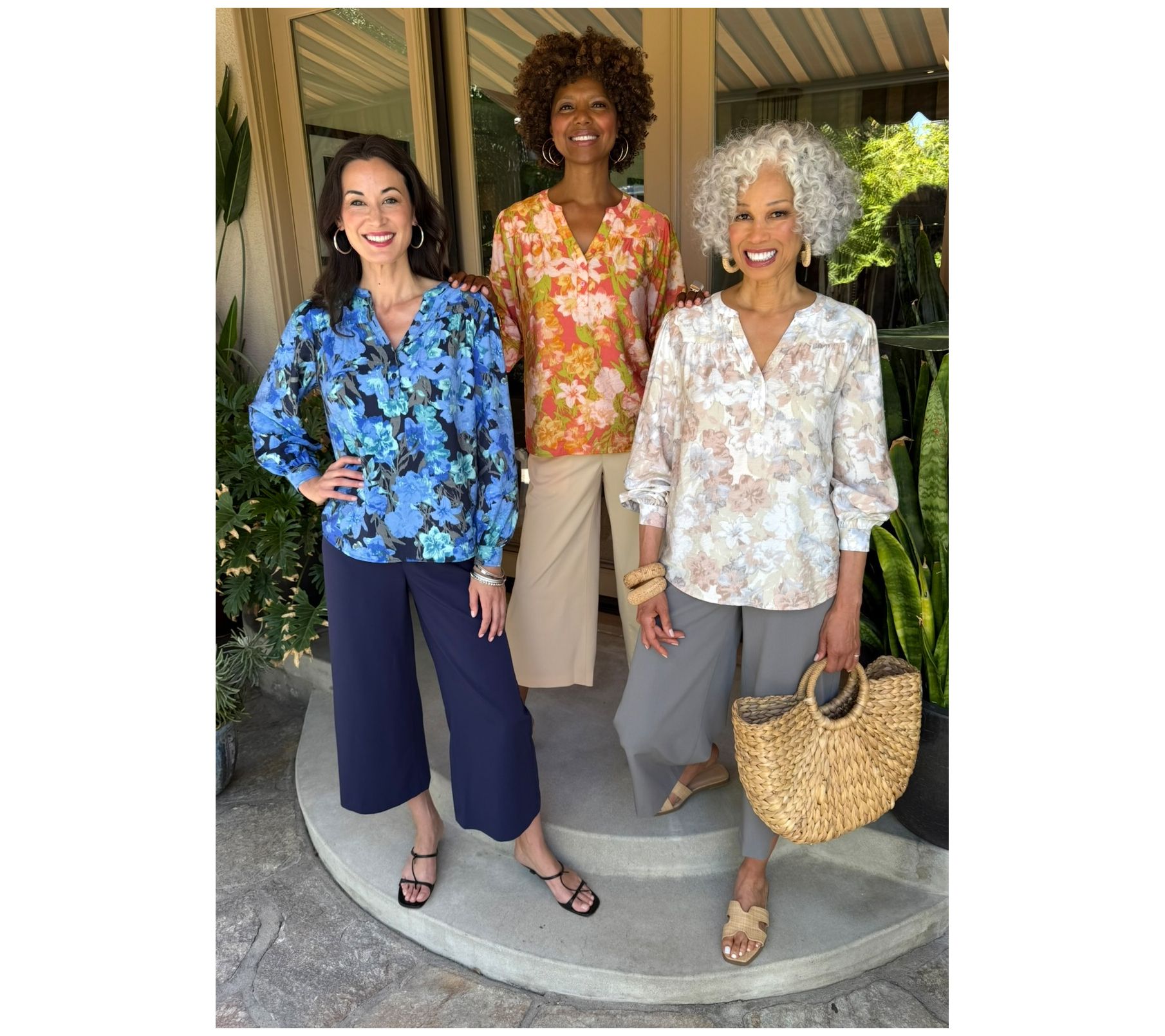 This printed Y-neck blouse is ready for whatever your week throws at you -- think office meetings, dinner dates, or casual afternoons out. A hi-low curved hemline and gathered blouson sleeves bring a fresh twist to your favorite woven. Style it solo or layer underneath a sweater vest as the seasons change. From BEAUTIFUL by Lawrence Zarian.
