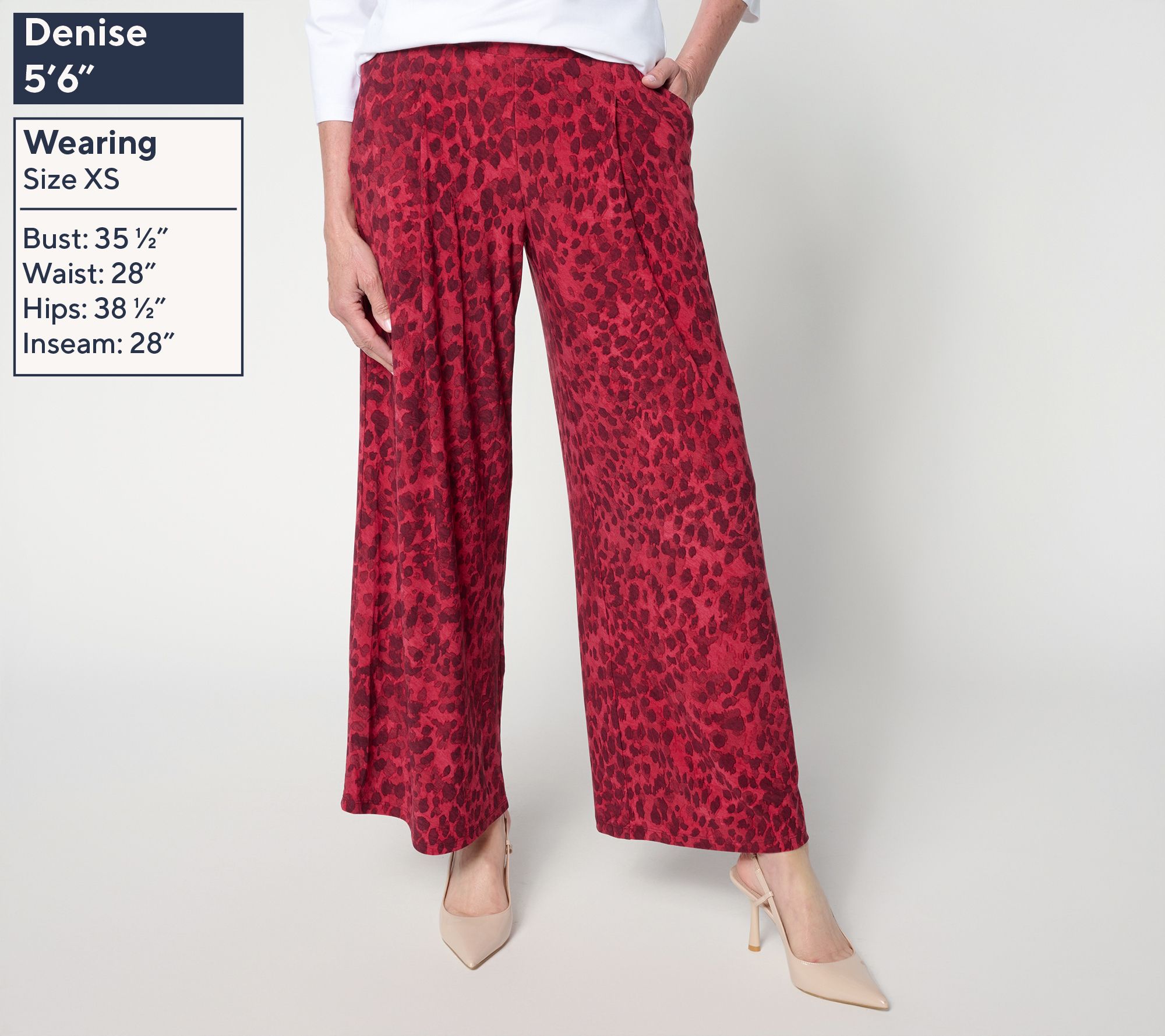 Go bold with these striking printed pants in Renee's beloved Como Jersey, made for days when your outfit needs a little extra oomph. The easy pull-on waistband and flowy wide leg keep you moving comfortably from brunch to errands to evening plans. Must-have pockets mean essentials are always within reach. From Women with Control®.
