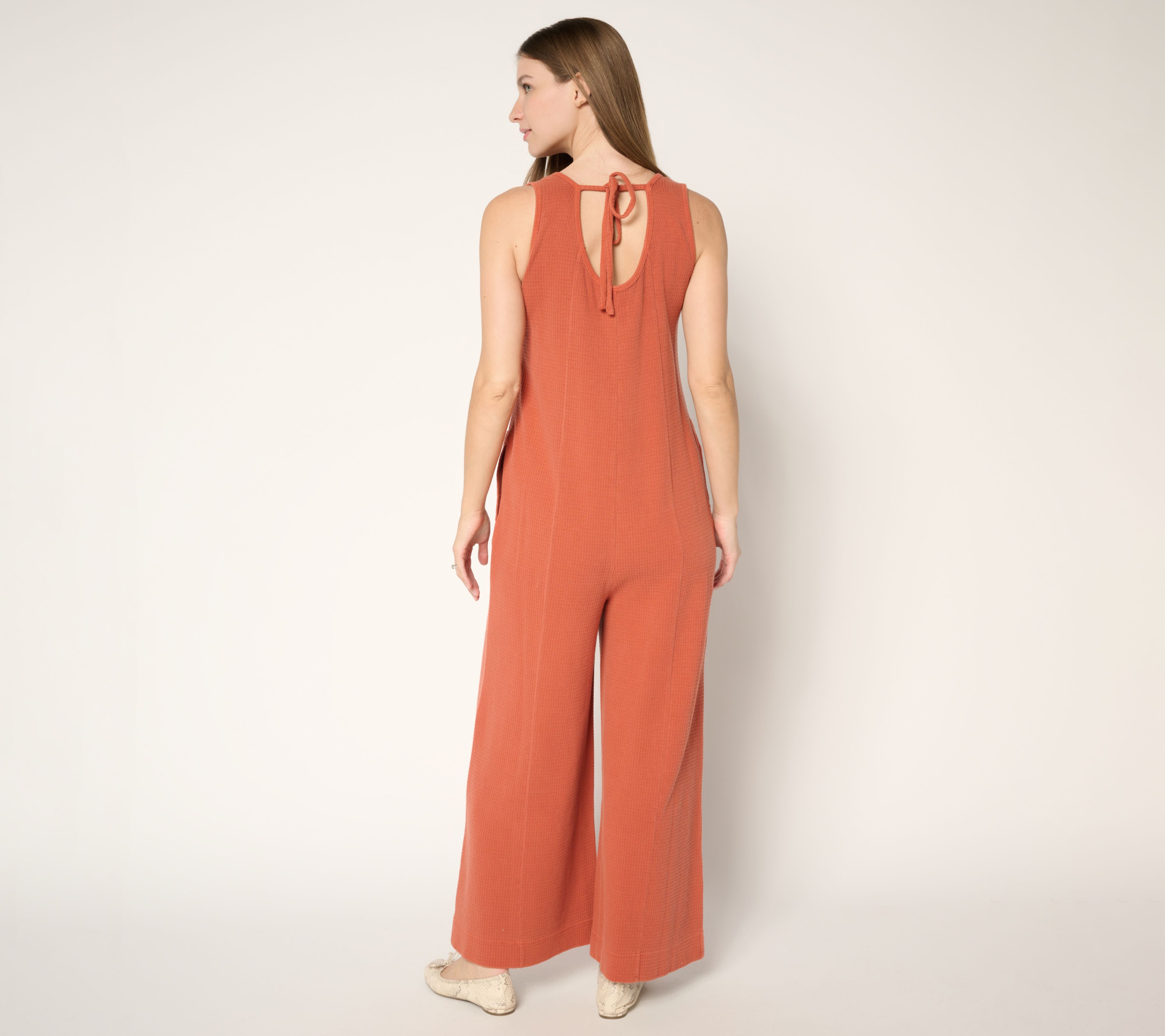 Fashion-forward and oh-so comfortable, this waffle knit sleeveless jumpsuit is a fabulous choice for vacations, garden parties, and lunches with the girls. From AnyBody®.