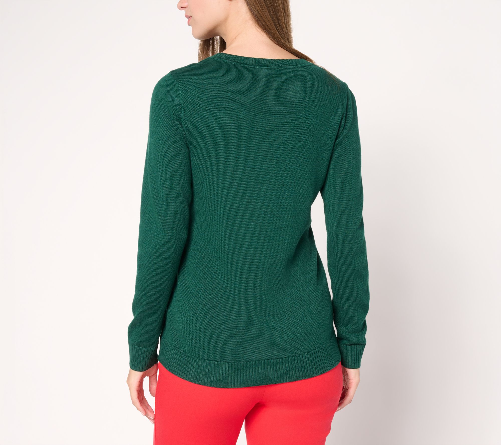 Whether worn as a festive holiday design or the feeling that a loved one is near, this cardinal crewneck sweater brings a cheerful vibe to quiet moments and seasonal gatherings. Rich in cotton, it's soft silhouette is comfortable... and comforting. From the Joan Rivers Classics Collection®.