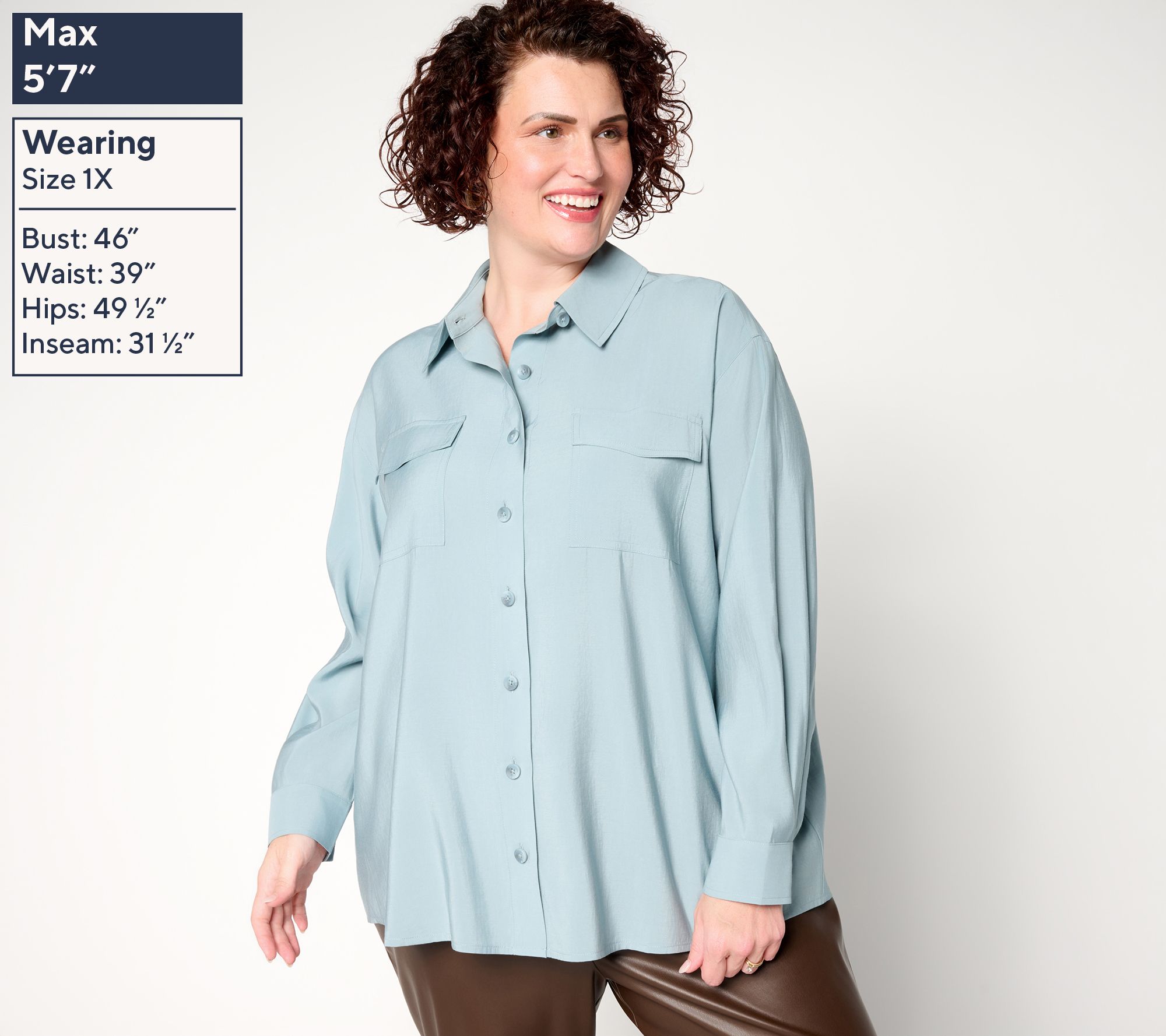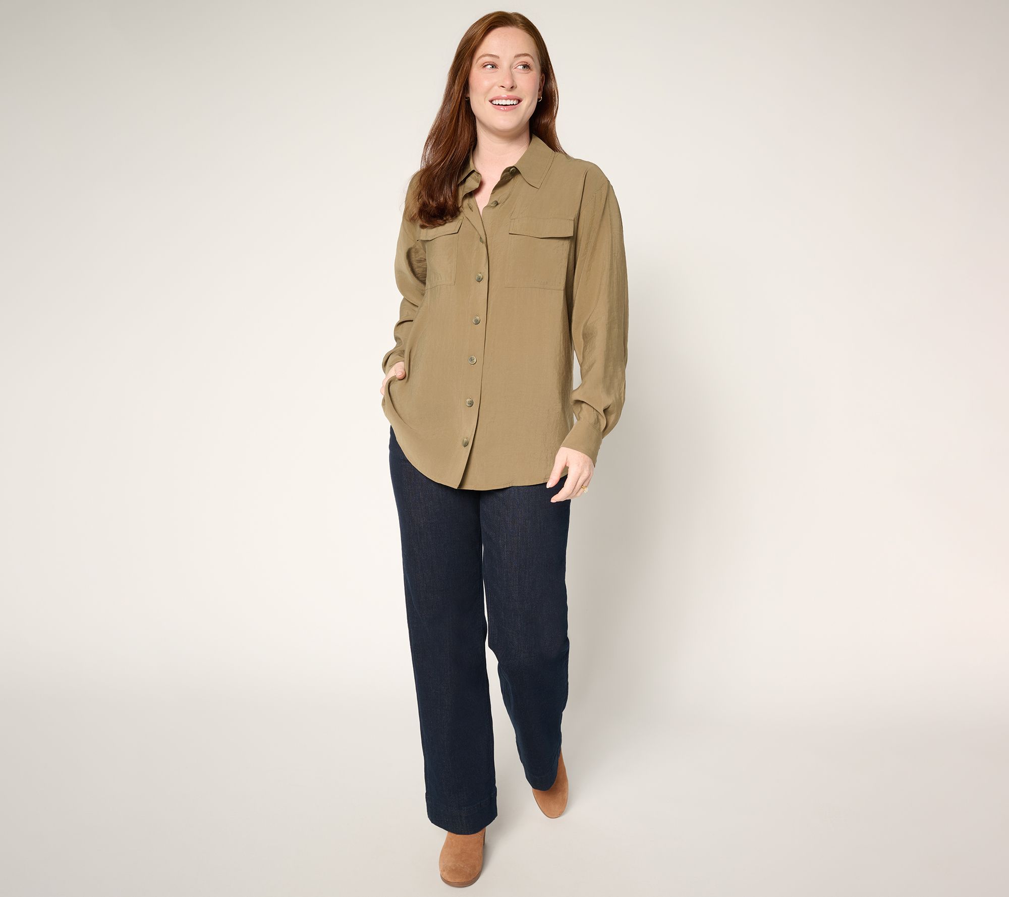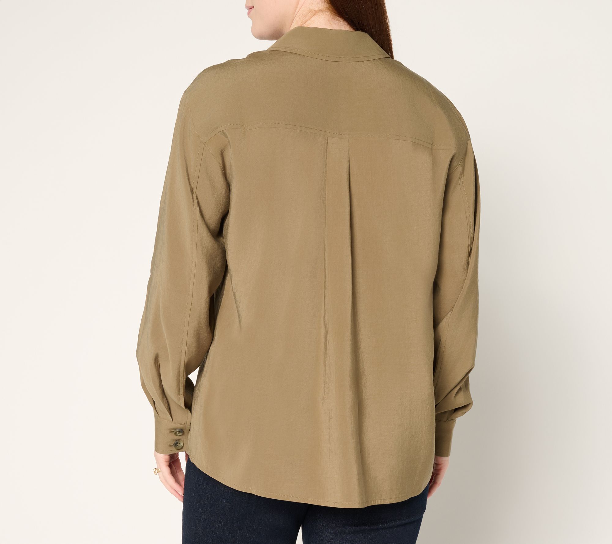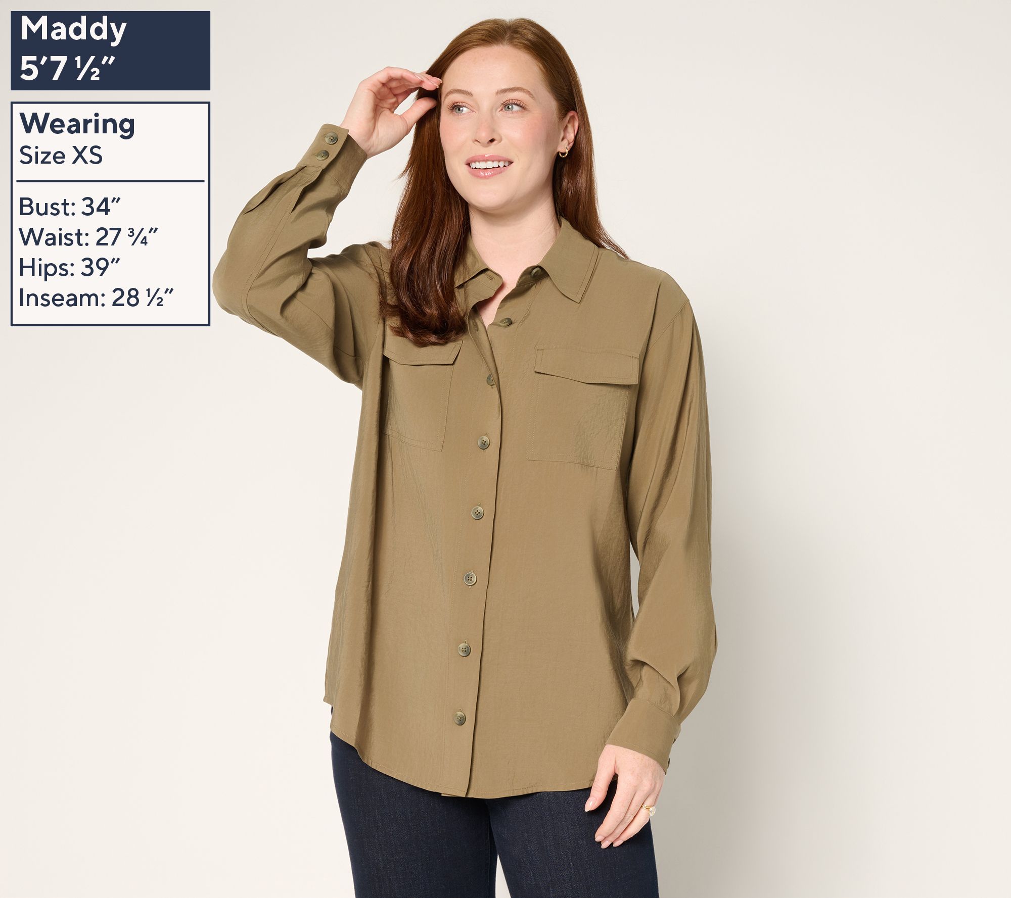 Your always at the ready with this patch pocket button-up shirt in your closet. Its relaxed fit makes it a must-have for busy days while its tailored structure offers a polished look when plans change. From Martha Stewart.