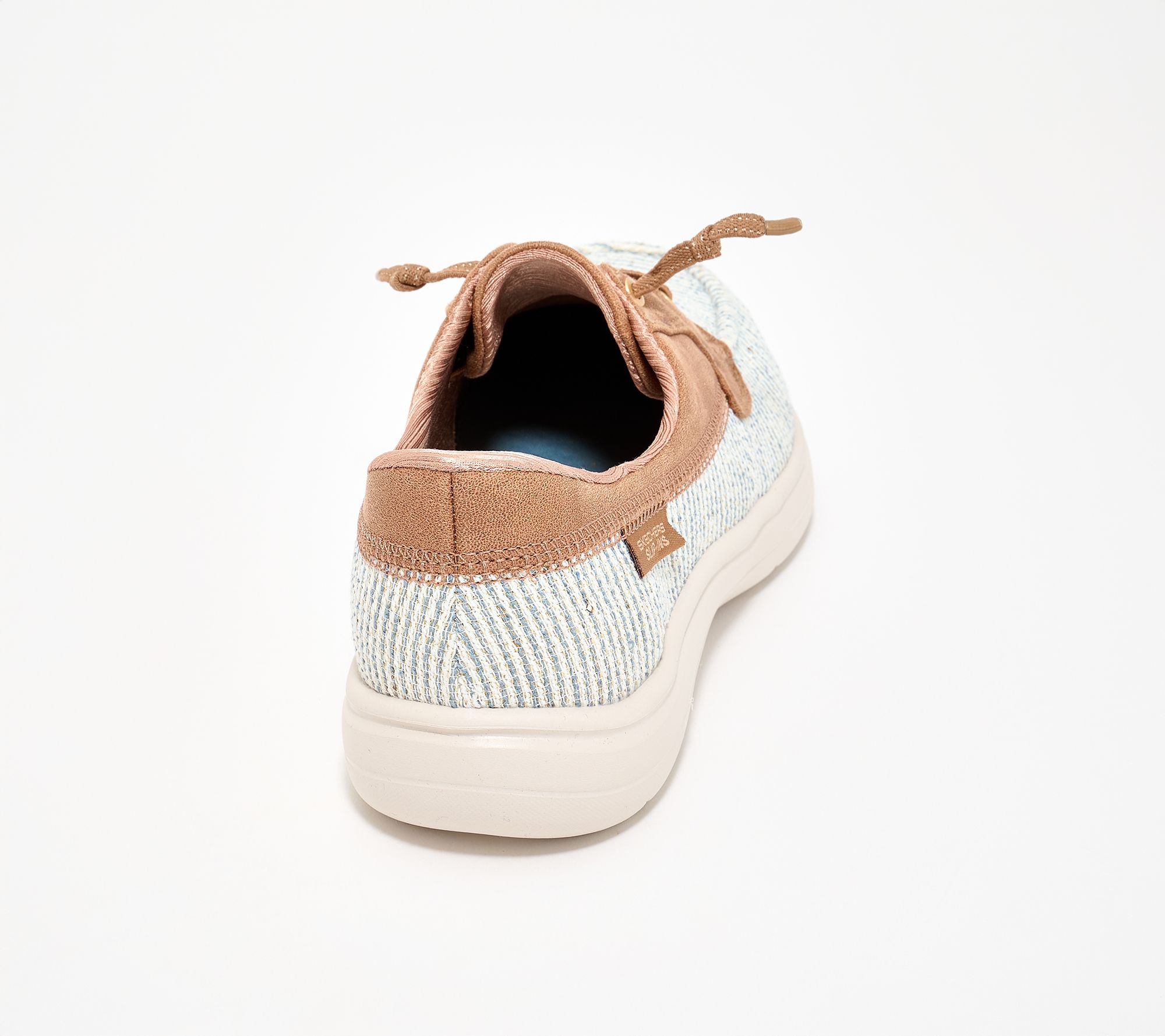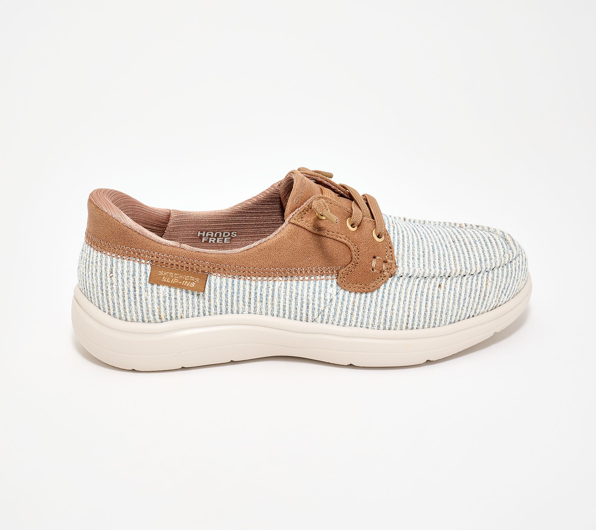 • Hands-free Slip-ins style, Heel Pillow™, glittery striped woven upper, Perform Tex saddle, tied-off stretch laces