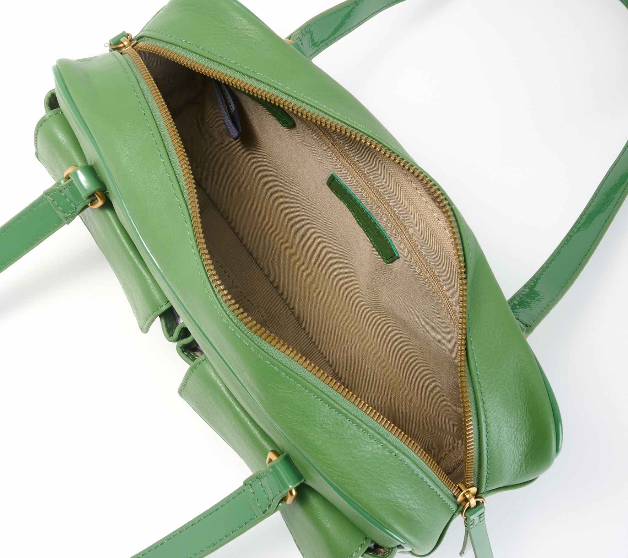 Black/Clover Green: body 100% leather; trim 51% recycled leather/20% polyester/14% polyurethane; lining 100% polyester