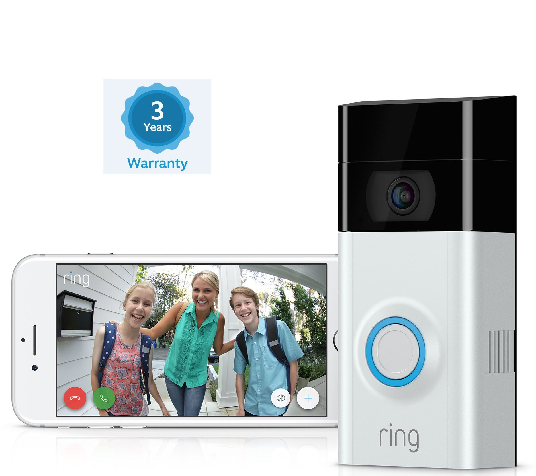 Your doorman has gone digital with the Wi-Fi-enabled Ring Video Doorbell 2. Using the free app on your smartphone or tablet, you'll be able to speak with visitors or keep an eye on your home, whether you're upstairs or across town! Plus, the included Chime Pro extends your home Wi-Fi signal from your router to all your Ring devices, so you won't miss an alert. From Ring.