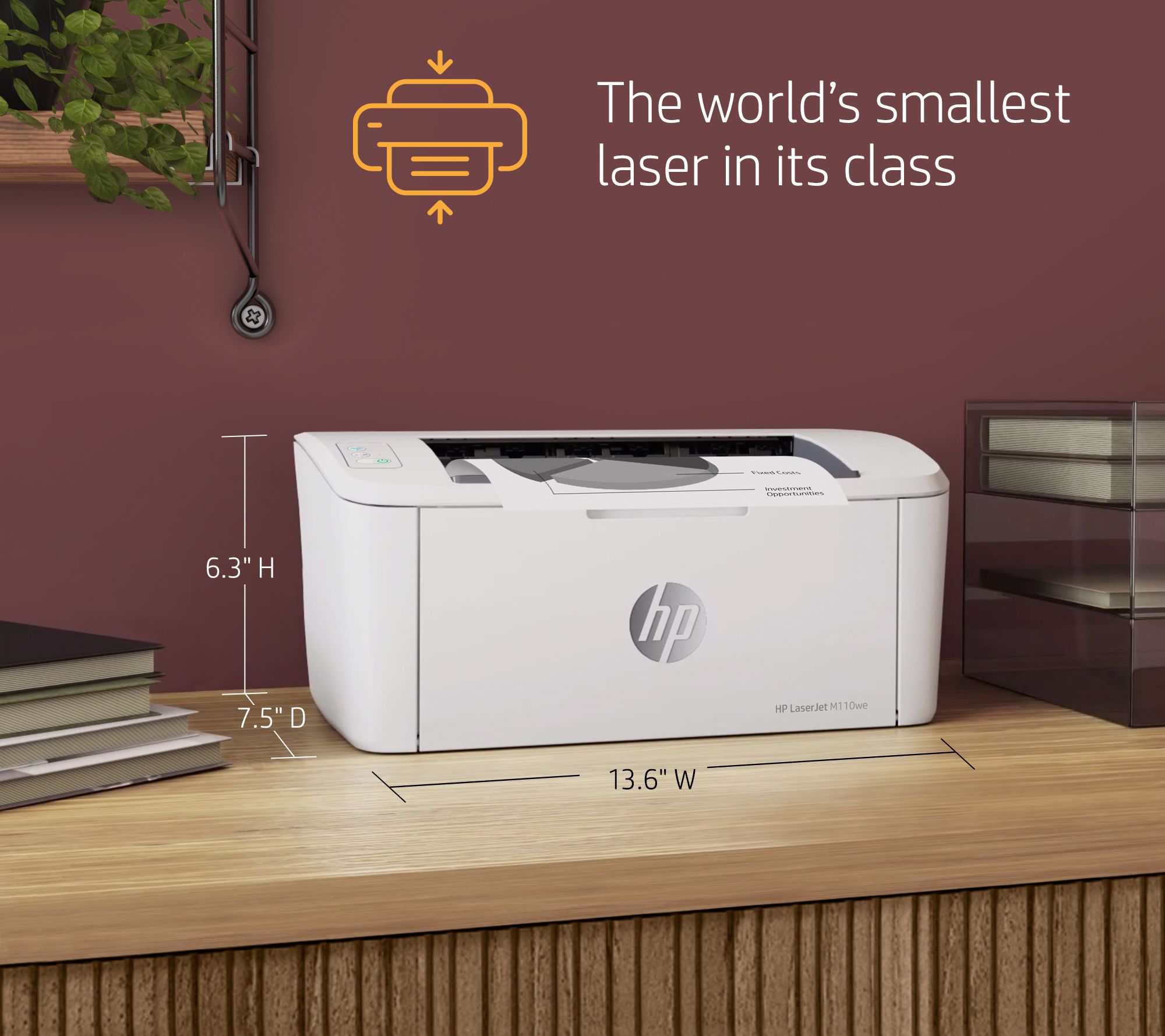 • Includes LaserJet M110we wireless black-and-white printer, HP 141A black toner cartridge, and power cord; six months of HP Instant Ink with HP+ activation