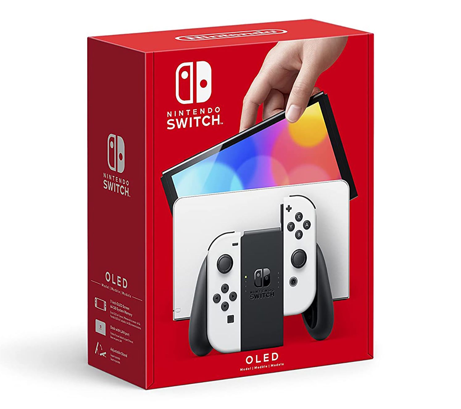 Meet the newest addition to the family -- the Nintendo Switch OLED! The incredibly versatile console-to-handheld system that you know and love gets an upgrade -- boasting a 7" OLED touch display for vivid color and crisp contrast, plus a wide adjustable stand, wired LAN port, and 64GB storage.