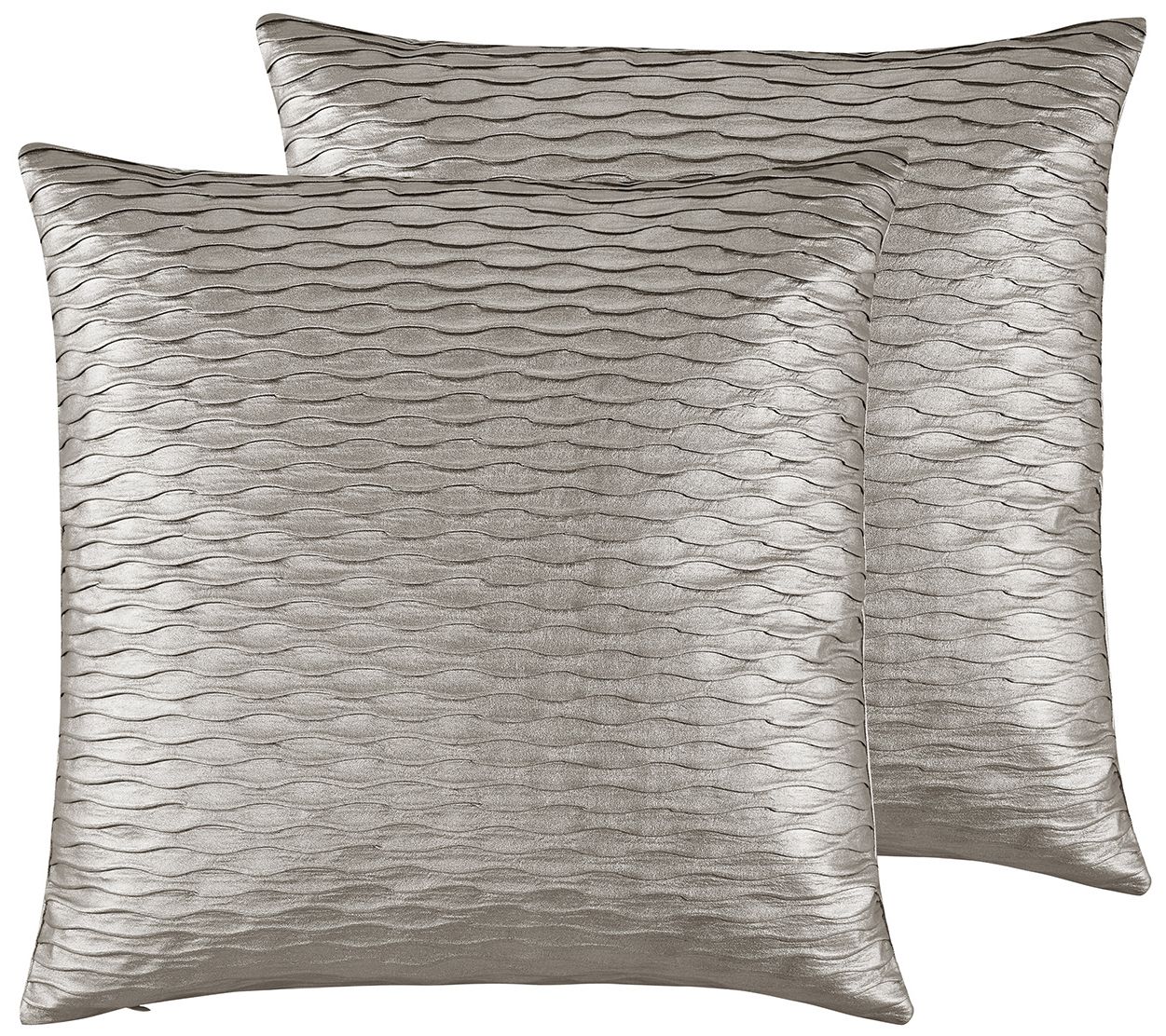Decorative pillows: Shell face/back 100% polyester with polyurethane coating; Cover 100% cotton; Fill 100% waterfowl feathers