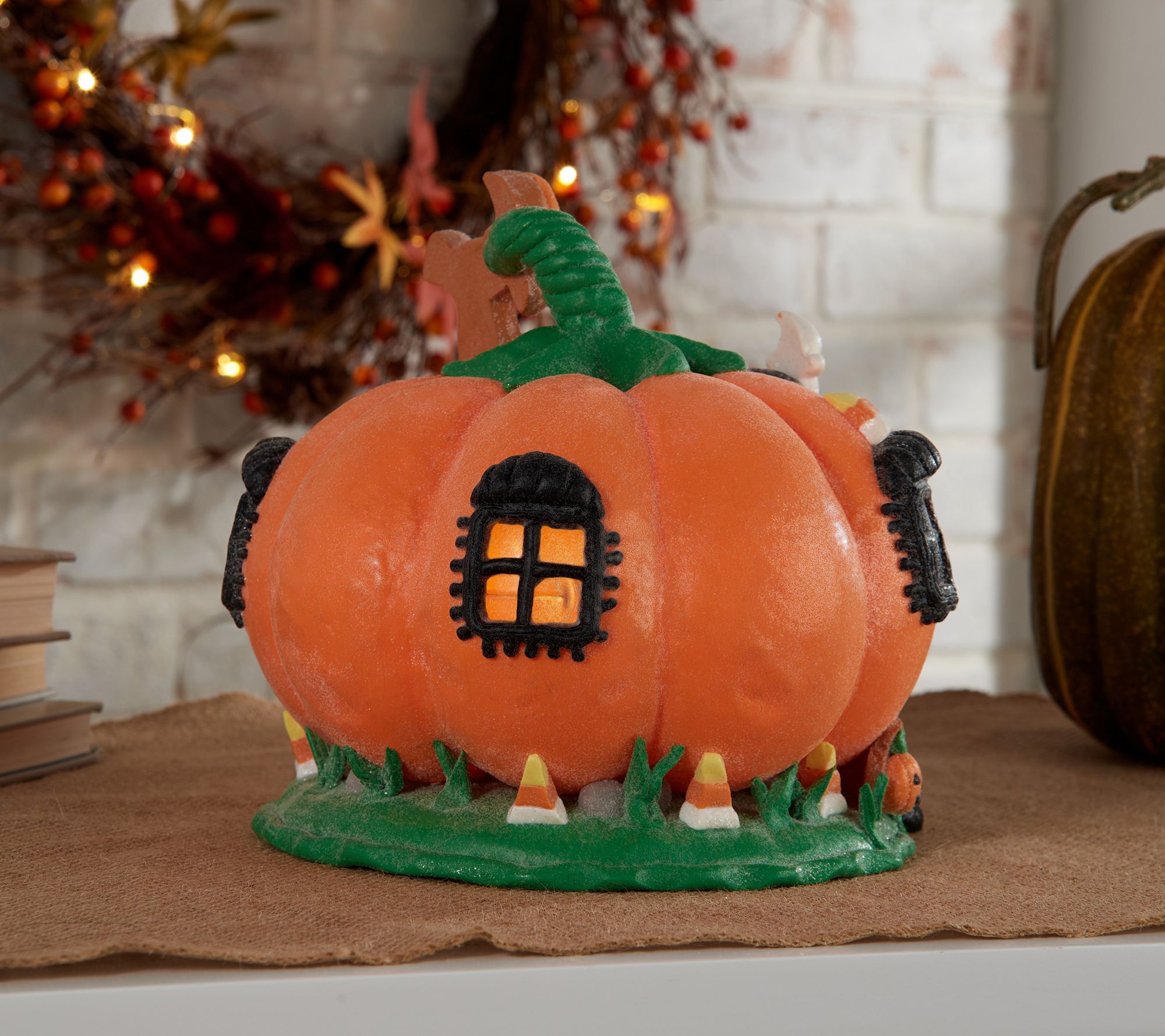 8" Illuminated Halloween Pumpkin-Shaped House by Valerie