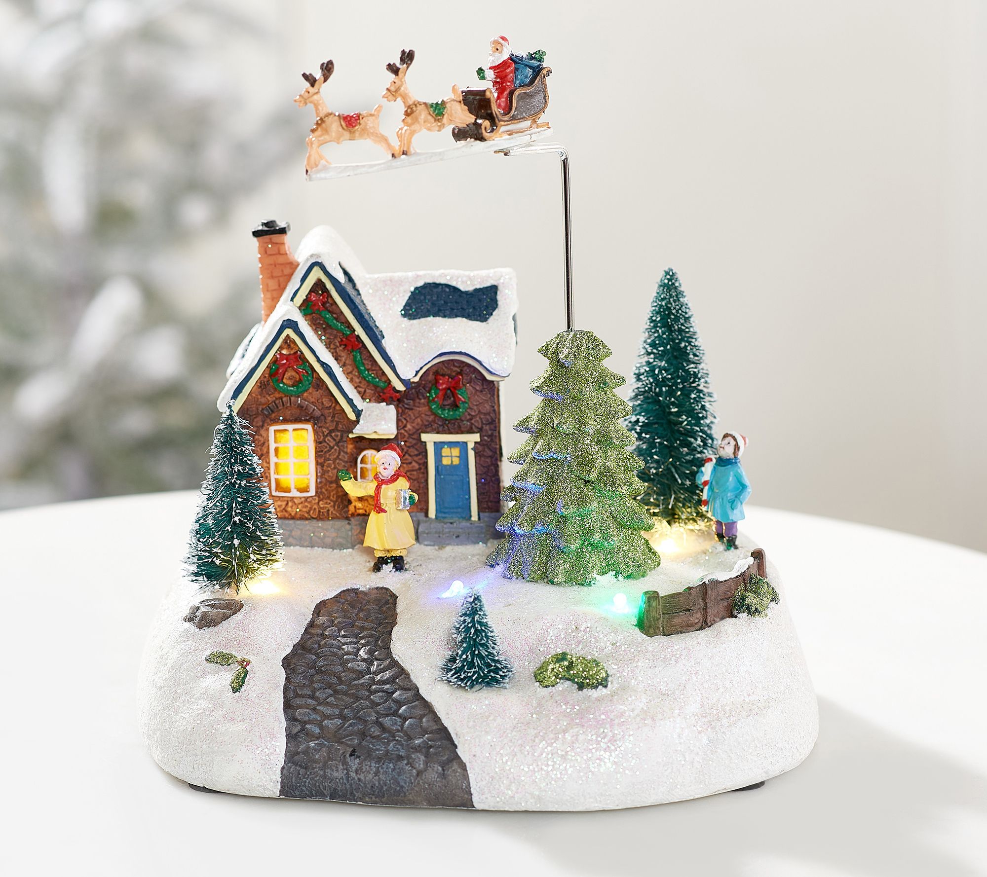 Santa soars with his reindeer over an idyllic Christmas village as onlookers take in the majestic scene. From Kringle Express.