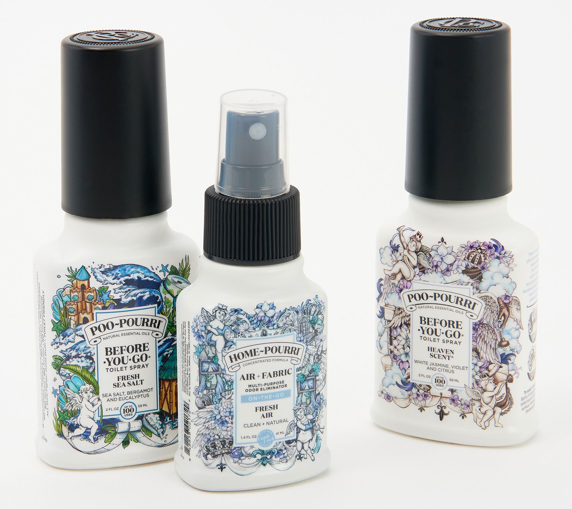 • Includes one 1.4 oz Home-Pourri and two Poo-Pourri bottles w/ confidence bag