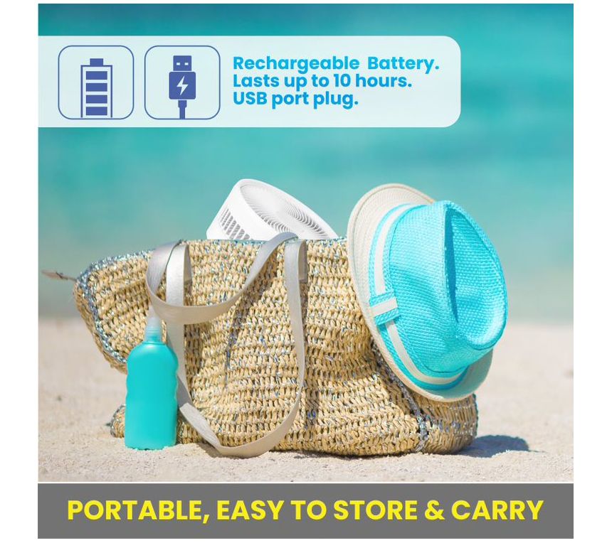 Enjoy a cool breeze wherever you roam with this portable foldaway fan that runs on rechargeable battery power. From As Seen on TV.