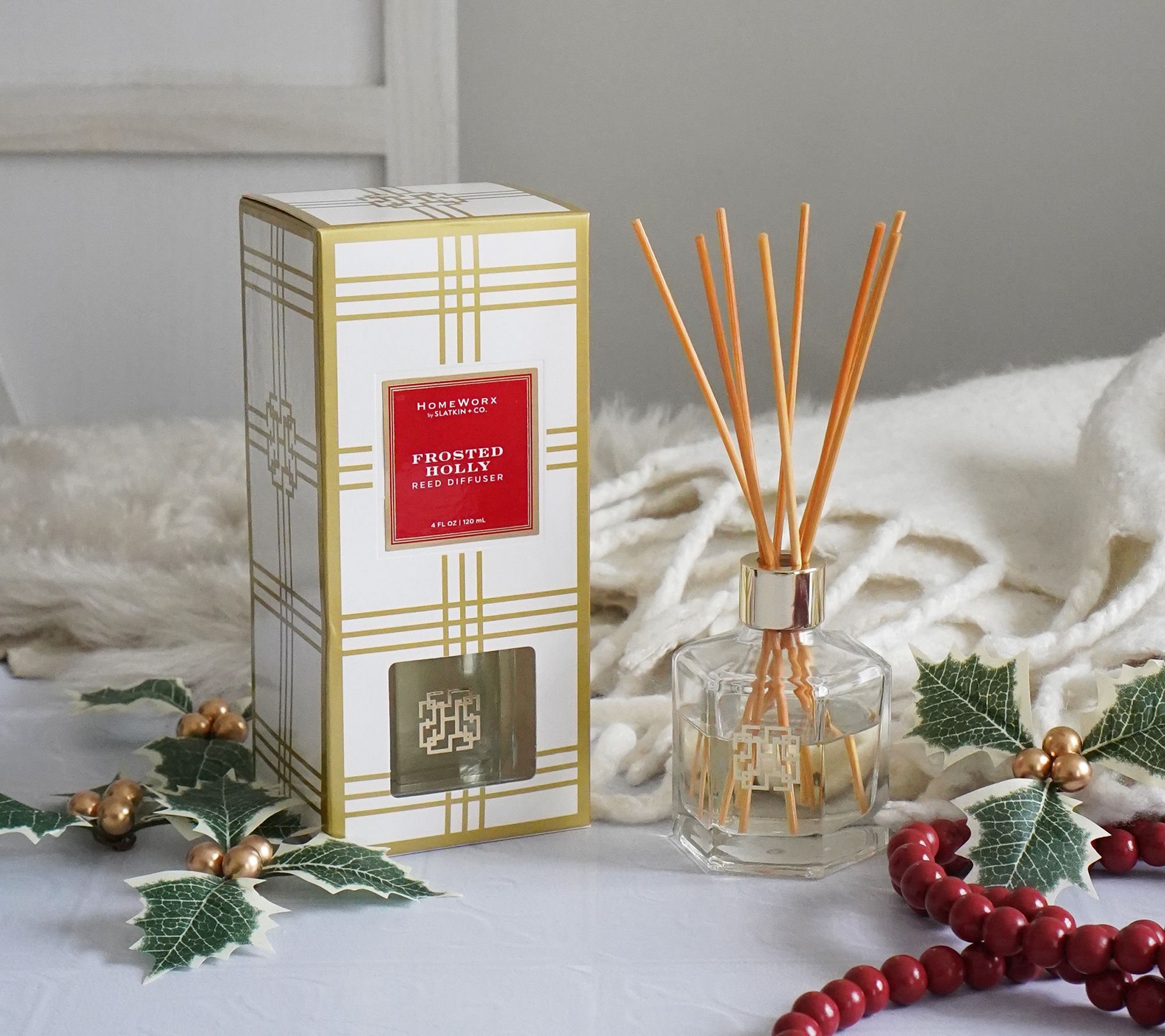 HomeWorx by Slatkin + Co. S/2 Frosted Holly Reed Sticks