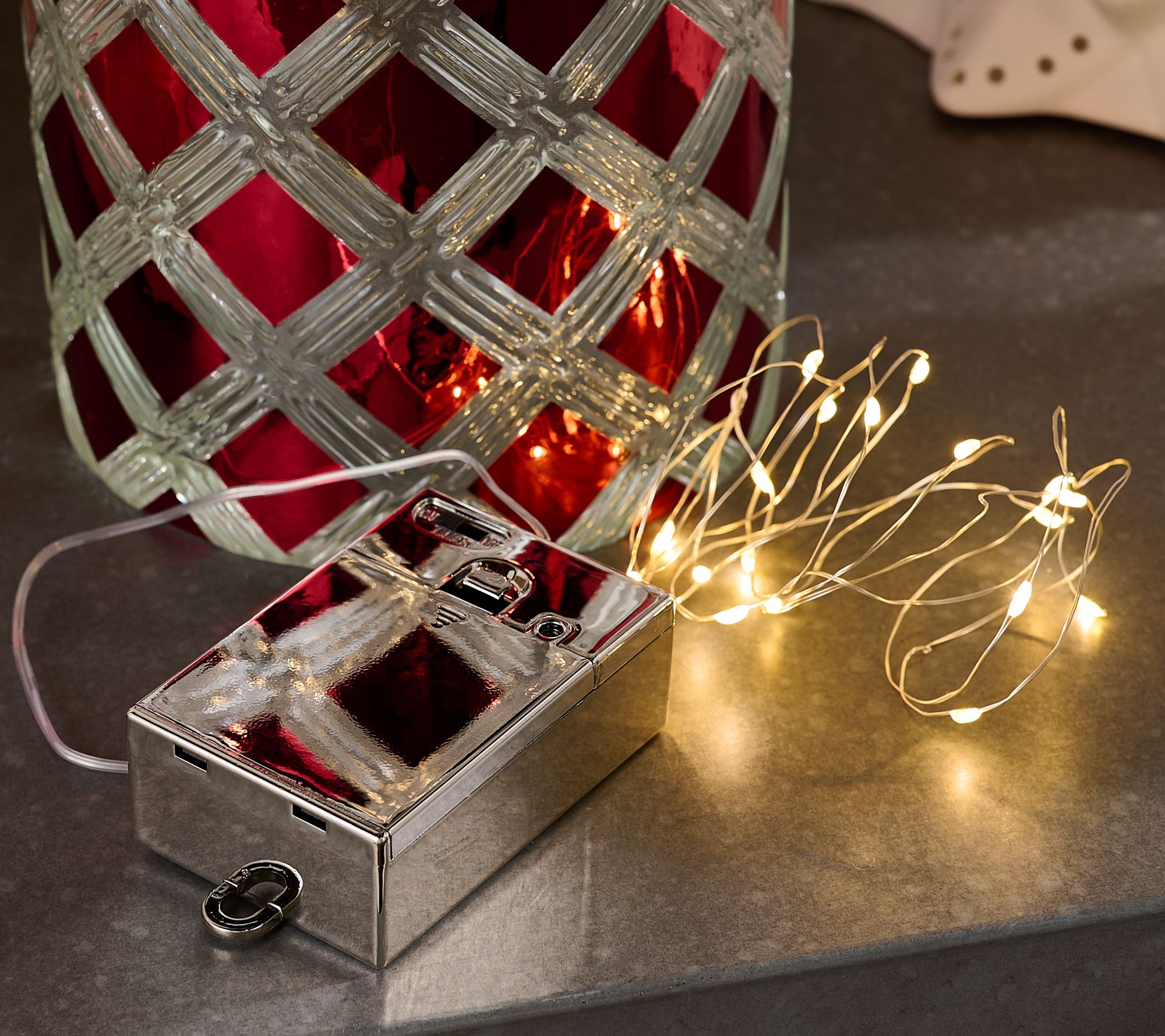 Highlight your holiday decor with an ethereal glow when you add this stunning hurricane to your display. Illuminating from within with a microlight strand, it sets the mood for a festive holiday season. From the Valerie Parr Hill Collection.