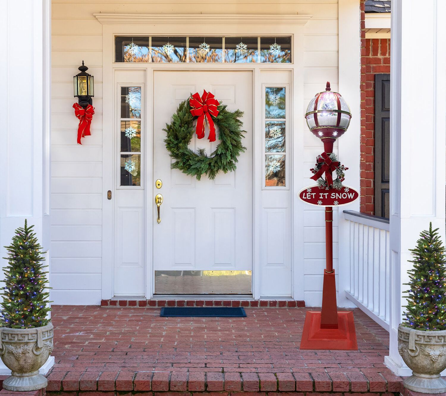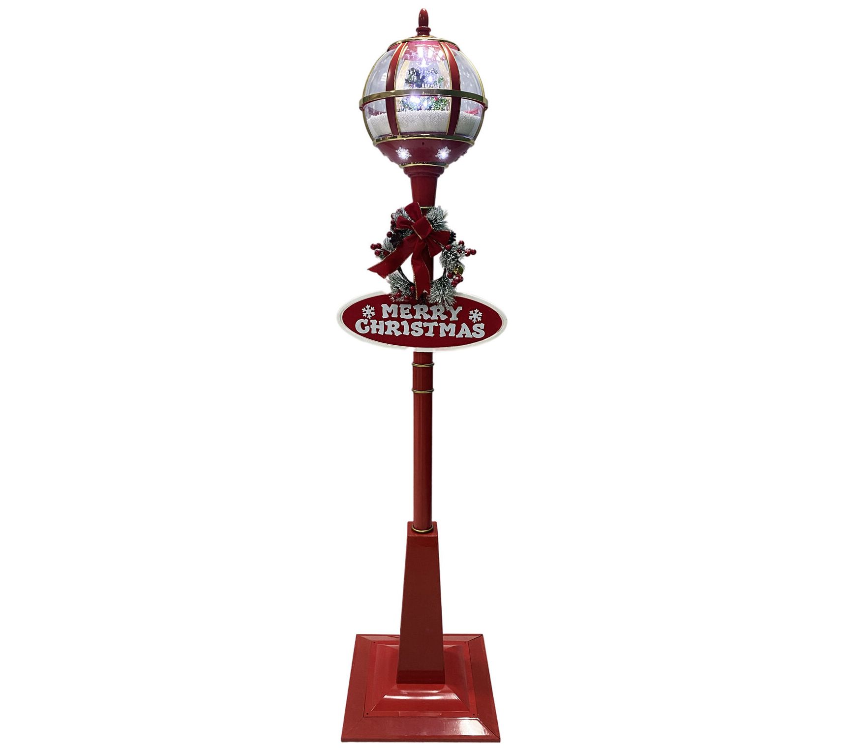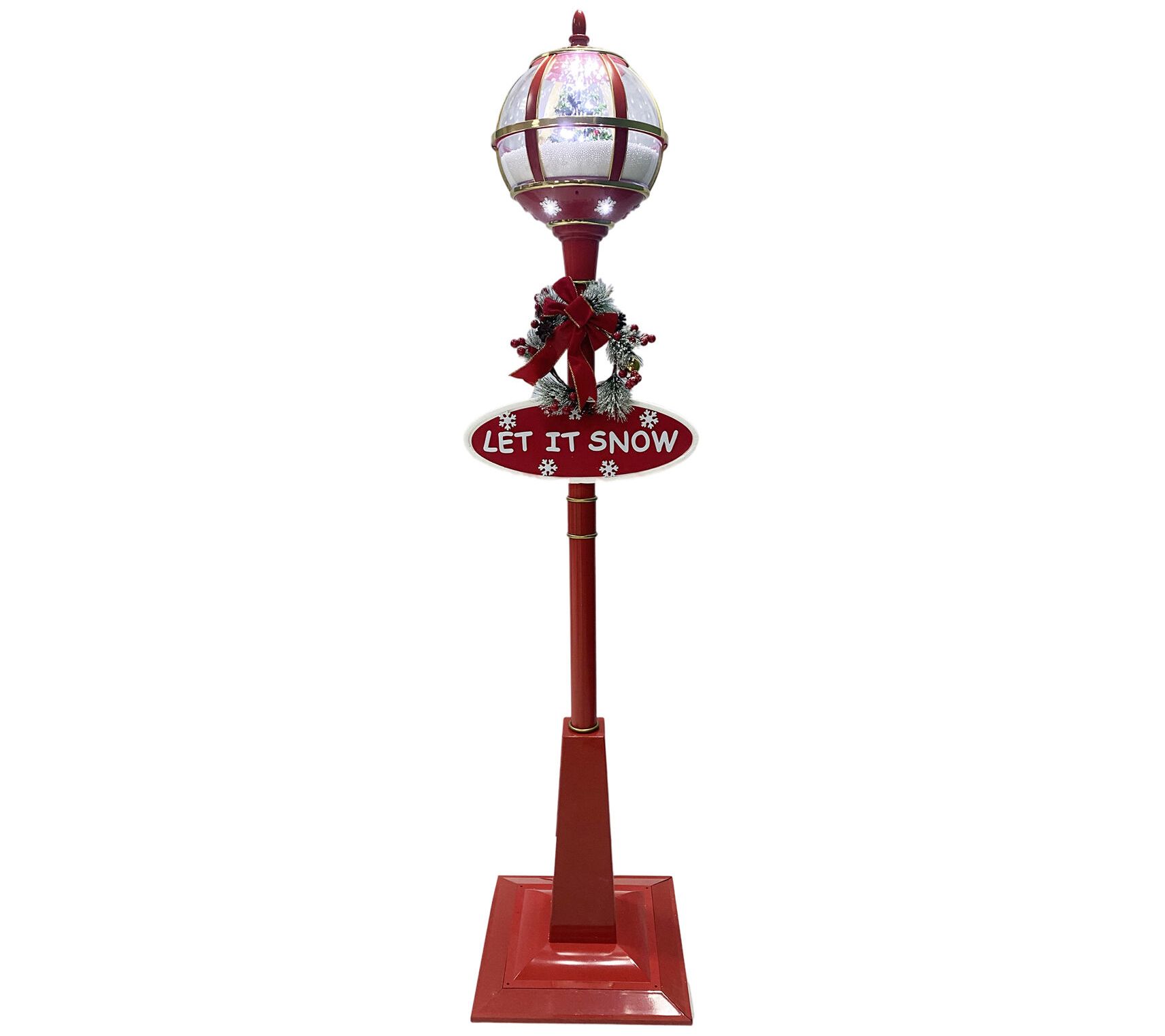 • Includes snow-globe lantern, lamp post, two signs, wreath decoration, power cord, and hardware