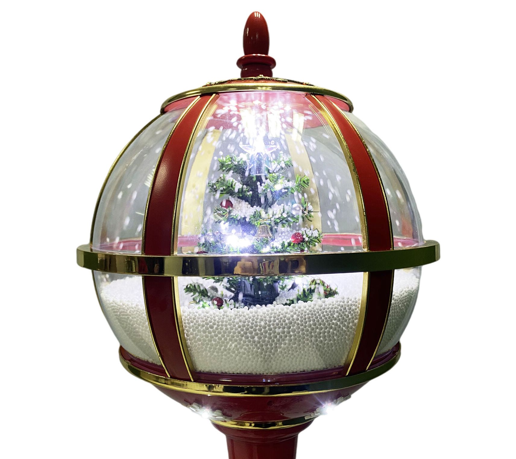 Inspired by the charm of a small-town Christmas, this snow-globe street lamp decor is a delightful addition to your home or porch. It features cascading snow and 25 Christmas tunes to brighten up your holiday season. From Christmas Time.