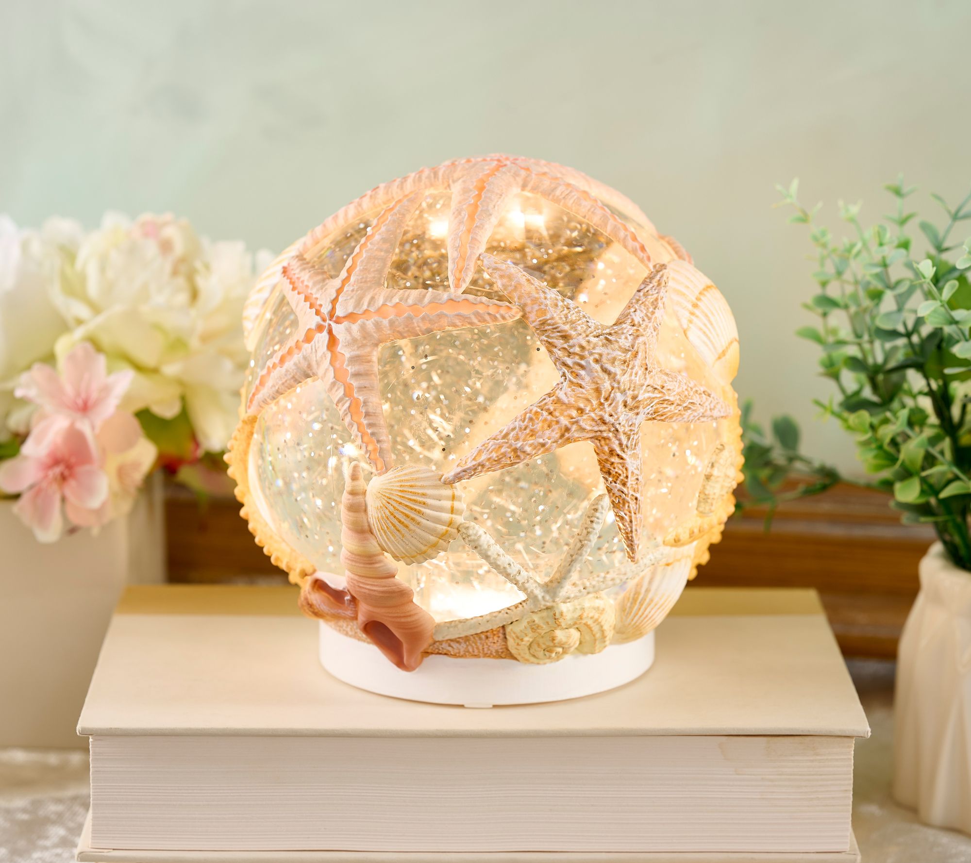 Bring home the beauty of the seashore with this gorgeous seashell glitter sphere. It illuminates and even features a convenient timer function. From the Valerie Parr Hill Collection.