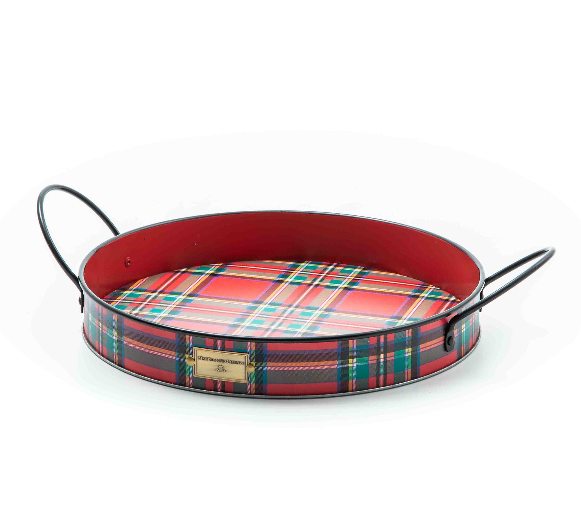 • Tartan design; Mackenzie-Childs logo plate