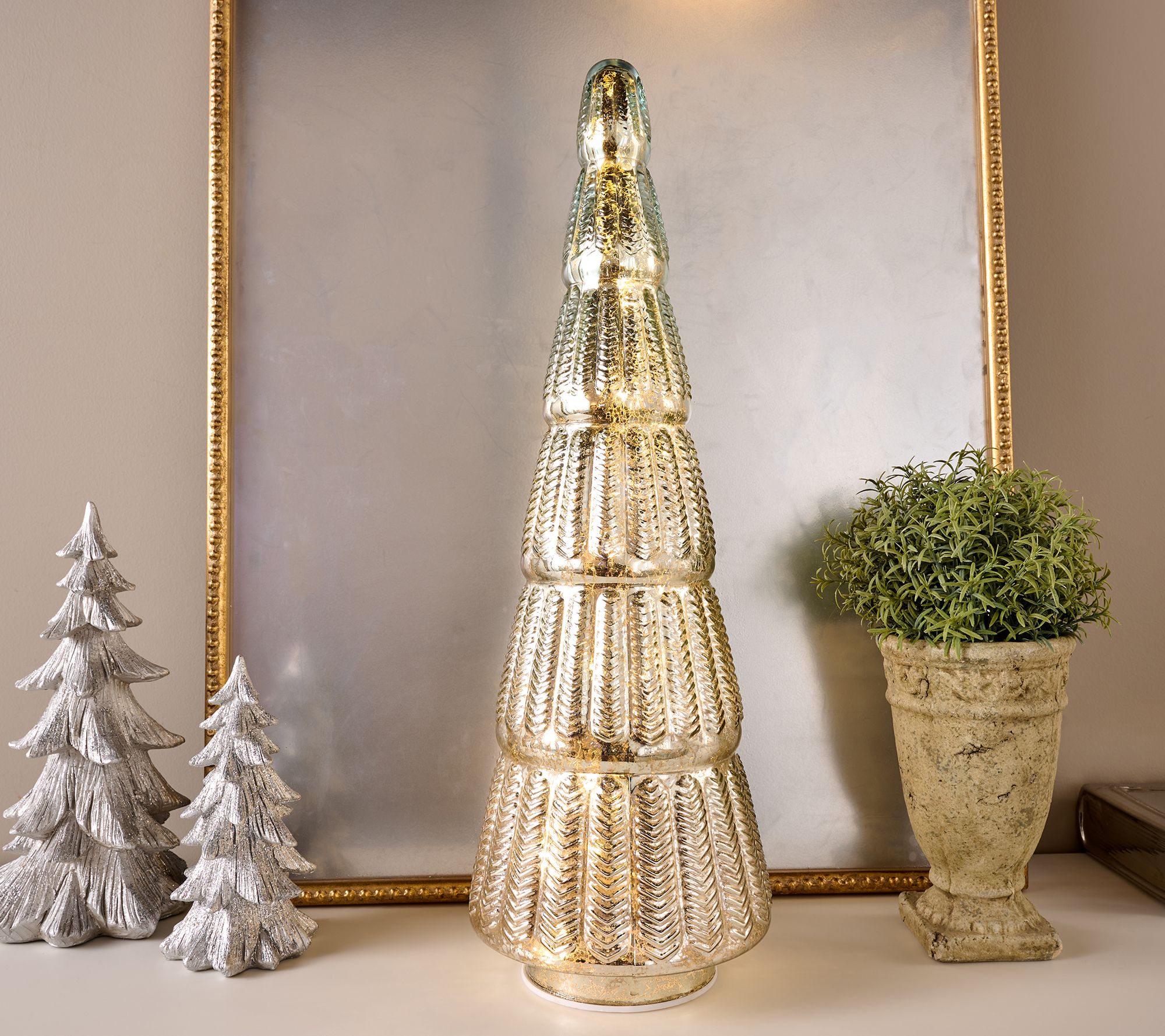 24" Illuminated Mercury Glass Tree with Color Flip LEDs by Kim Gravel