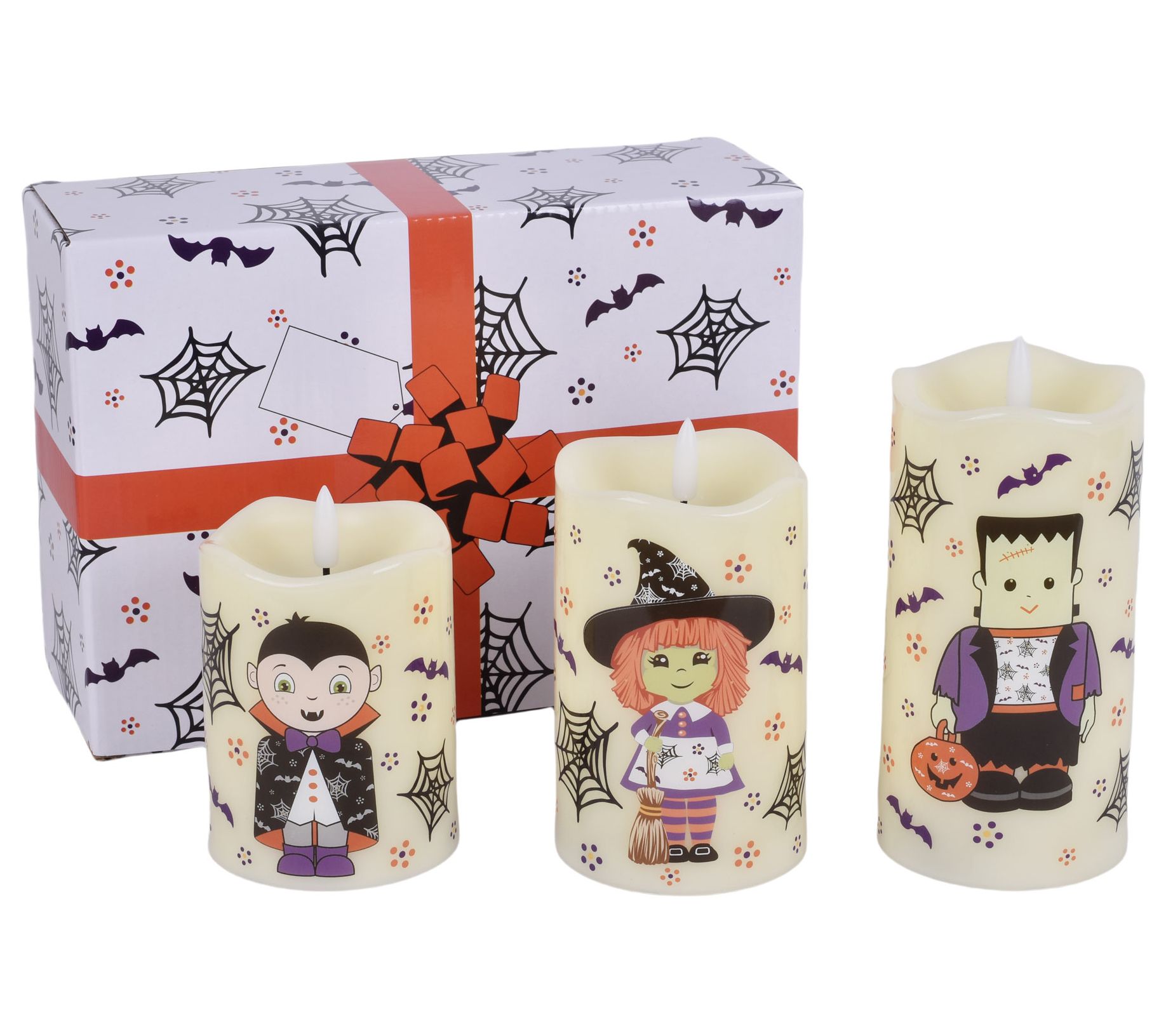 Ignite the spirit of Halloween in your home with these flameless candles. The fun seasonal design adds flair to your decor and the flameless and fiberoptic technology means the frightful glow comes without the worry of an open flame. From Temp-tations® Ovenware.