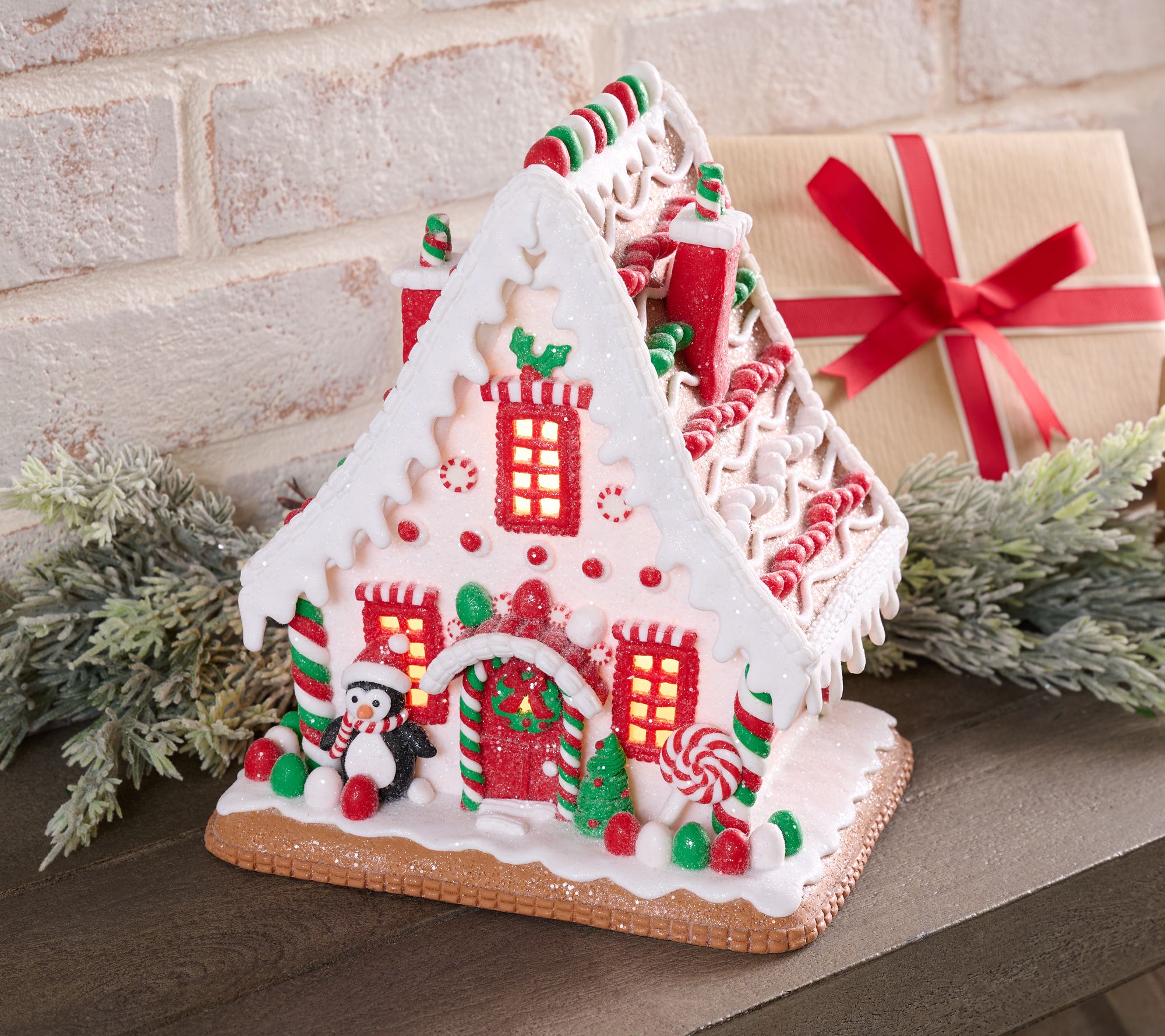 Just when you thought your holiday gingerbread village was complete... in drops this pint-sized penguin palace! The sweet illuminated shelter for the frosty flatmate overflows with piped details, candies, and not-so-cookie-cutter accents. From the Valerie Parr Hill Collection.