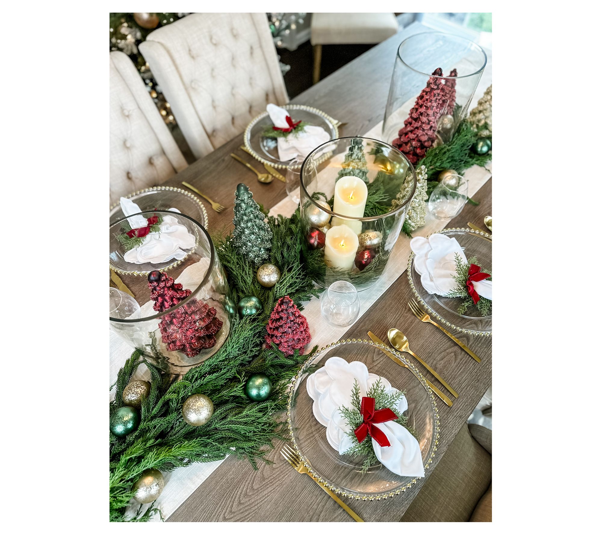 Lifelike wreath with a mix of Real Touch greenery: balsam, cedar, and Norfolk pine