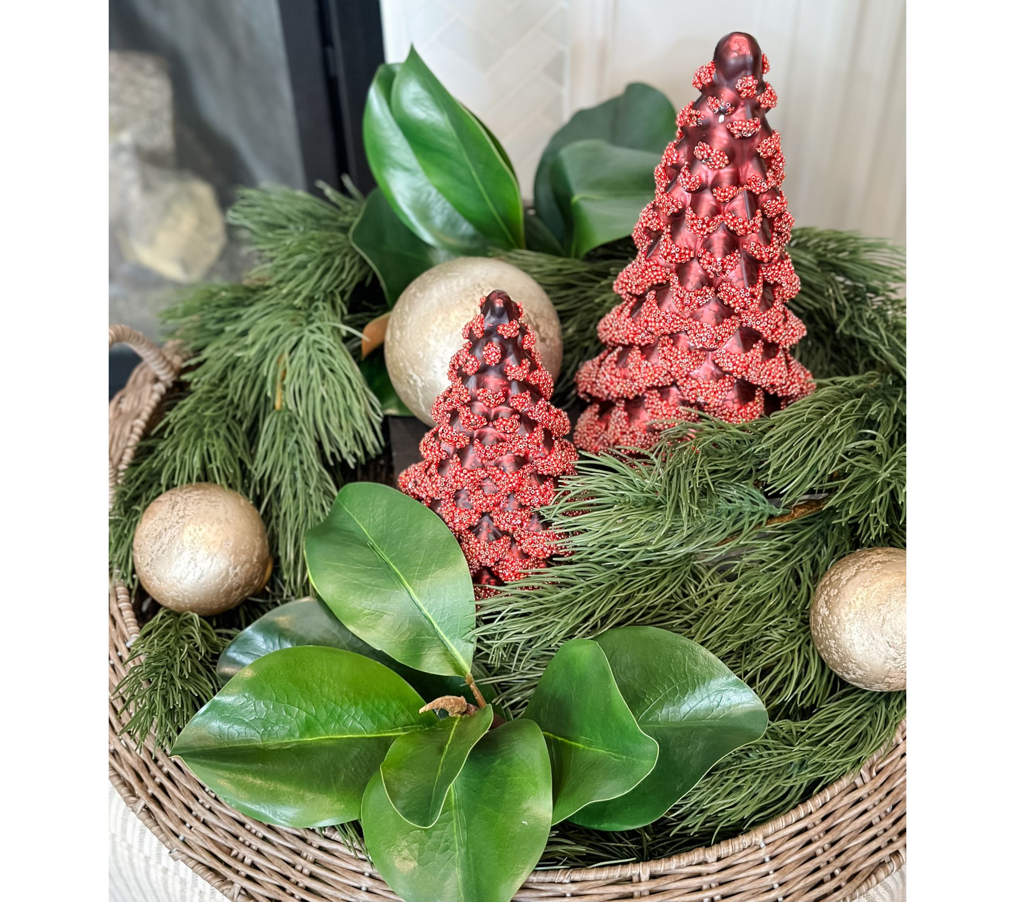Decorative accents -- like this oversized woven tray from Janine Graff -- are the profesh touches that take your abode from house to home. With its ample shape and seasonless design, this tray is the perfect perch for flameless candles, faux flowers or greenery, pumpkins, ornaments, and so much more. Dress it up differently for every season. From The Simply Stunning by Janine Graff.