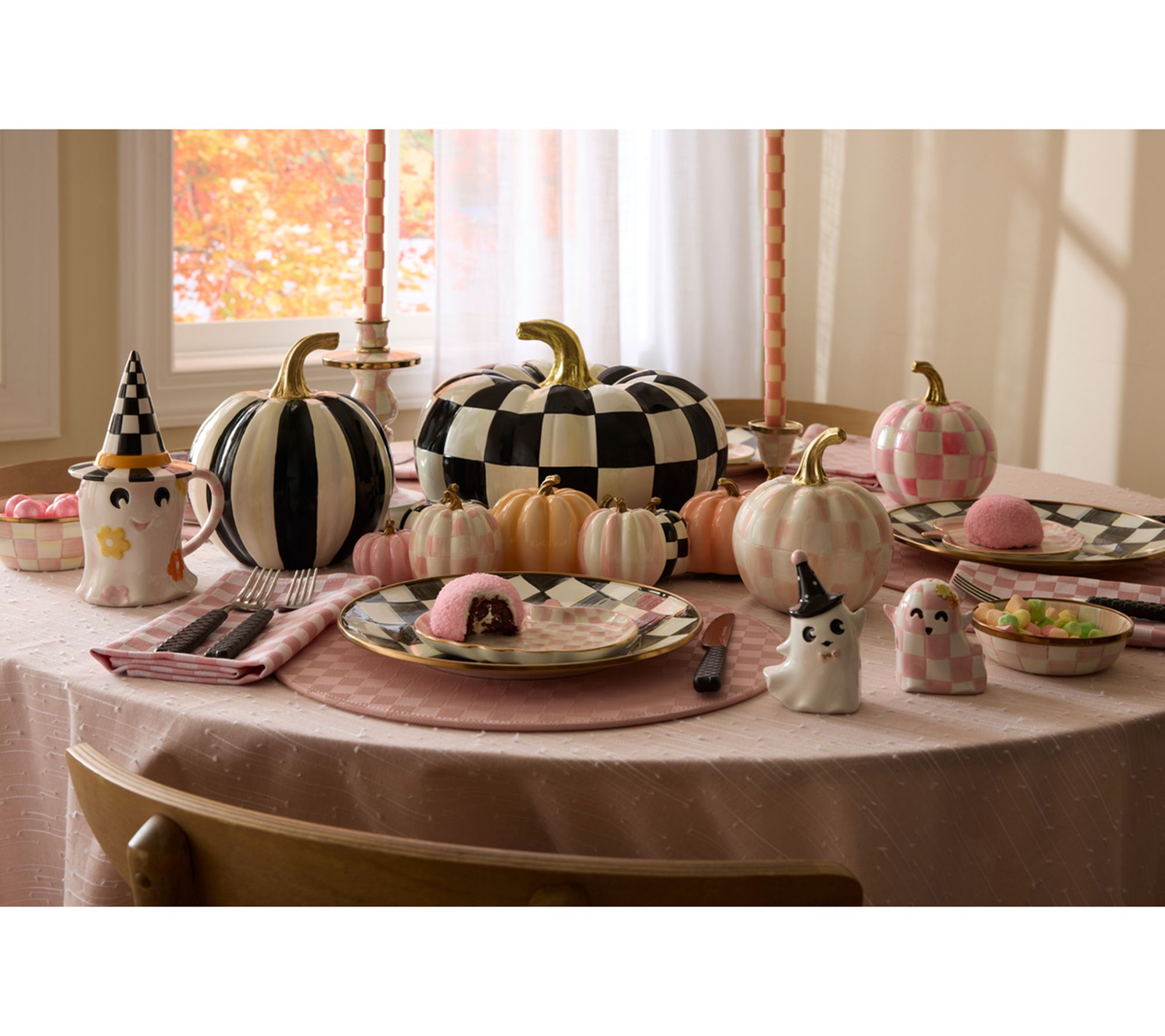 Hocus Pocus! Let this (not so) scary pair of ghost salt and pepper shakers spice up your fall gatherings with playful Halloween spirit. Crafted from ceramic, each shaker features a whimsical ghost design that brings a fun touch to autumn dinners, festive parties, or everyday meals, making every meal a little more magical. From MacKenzie-Childs.