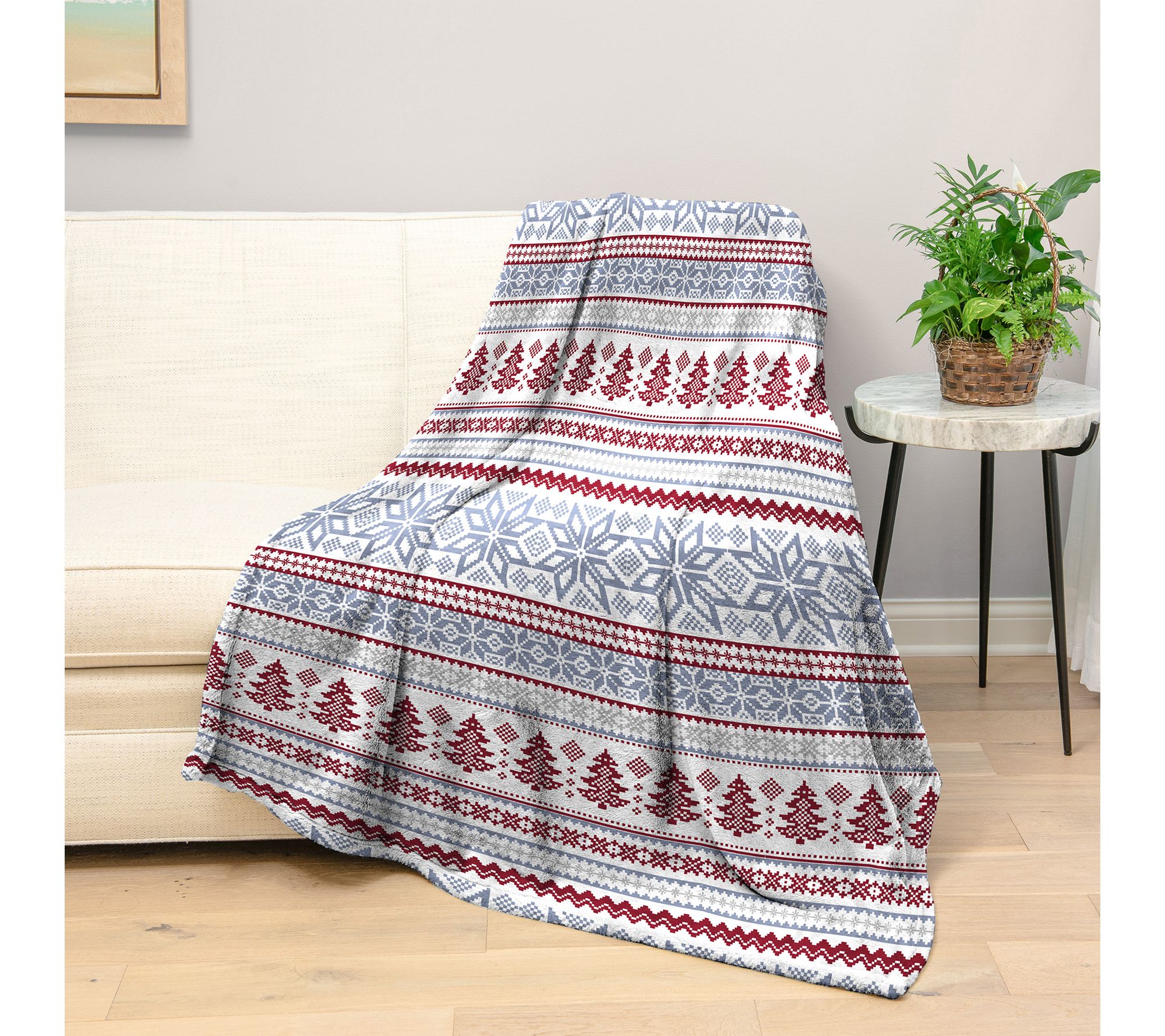 Includes two throws: one pattern, one solid color