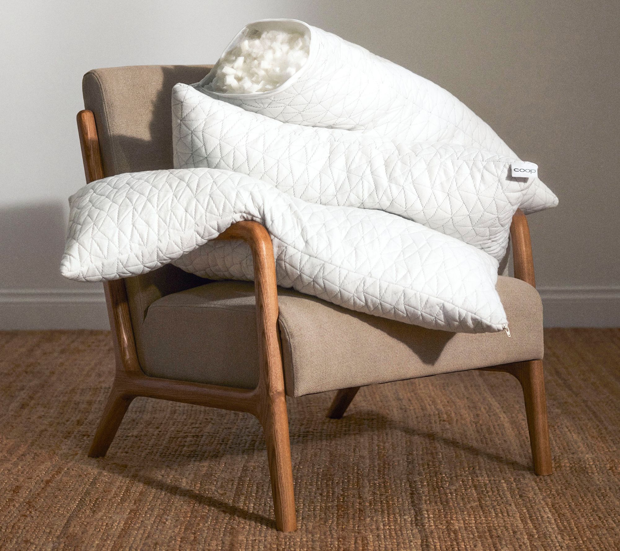 Craft your most comfortable sleep environment with an adjustable pillow that lets you choose just the right amount of support every night. Easily add or remove filling to create the loft that suits your personal preference -- whether you prefer soft and low or lofty and firm, this pillow adapts to you. From Coop.