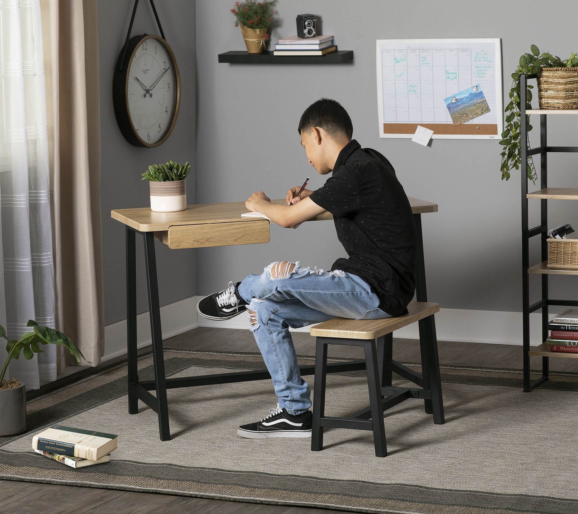 Calico Designs Ashwood Homeroom Writing Desk with Bench