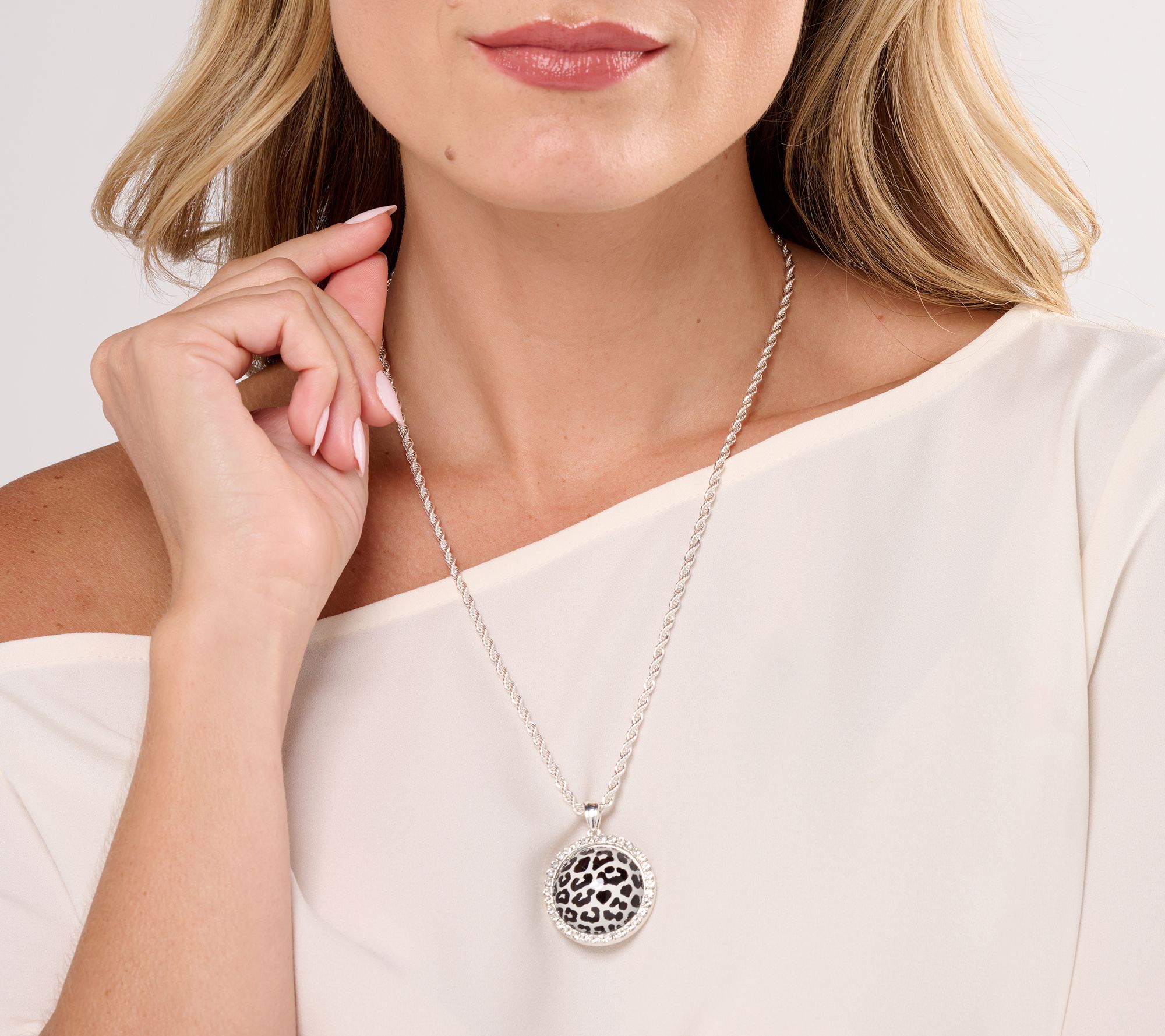 A fierce find, this animal print pendant with rope chain provides an edgy elegance to any outfit. From Joan Rivers Classics Collection.