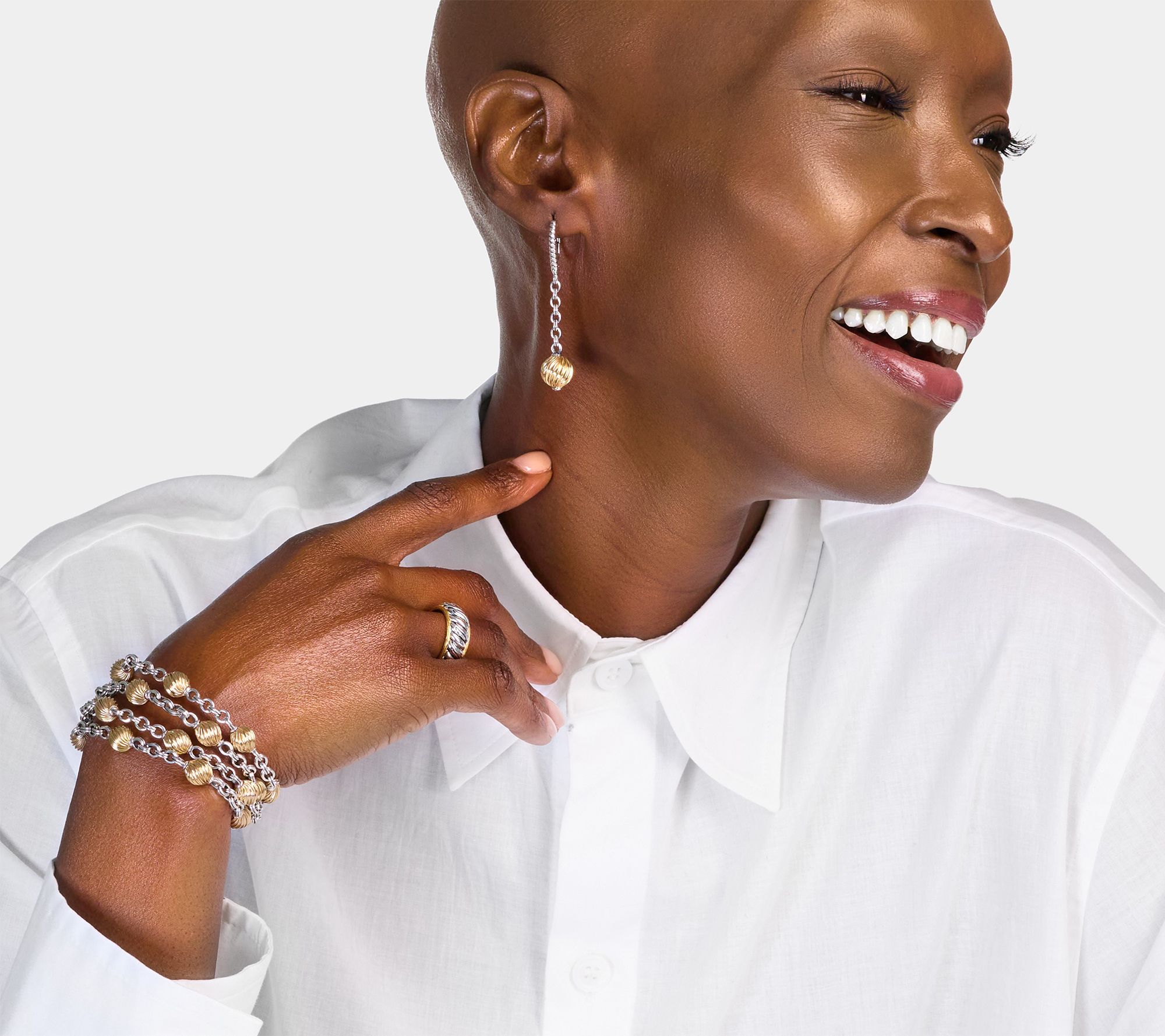 Add some delightful dangle and trend-right texture to any outfit with these luxurious two-tone lever back earrings -- exquisitely designed with a round ribbed bead attached to a rolo link chain. From Christian James by Scott Grimes.