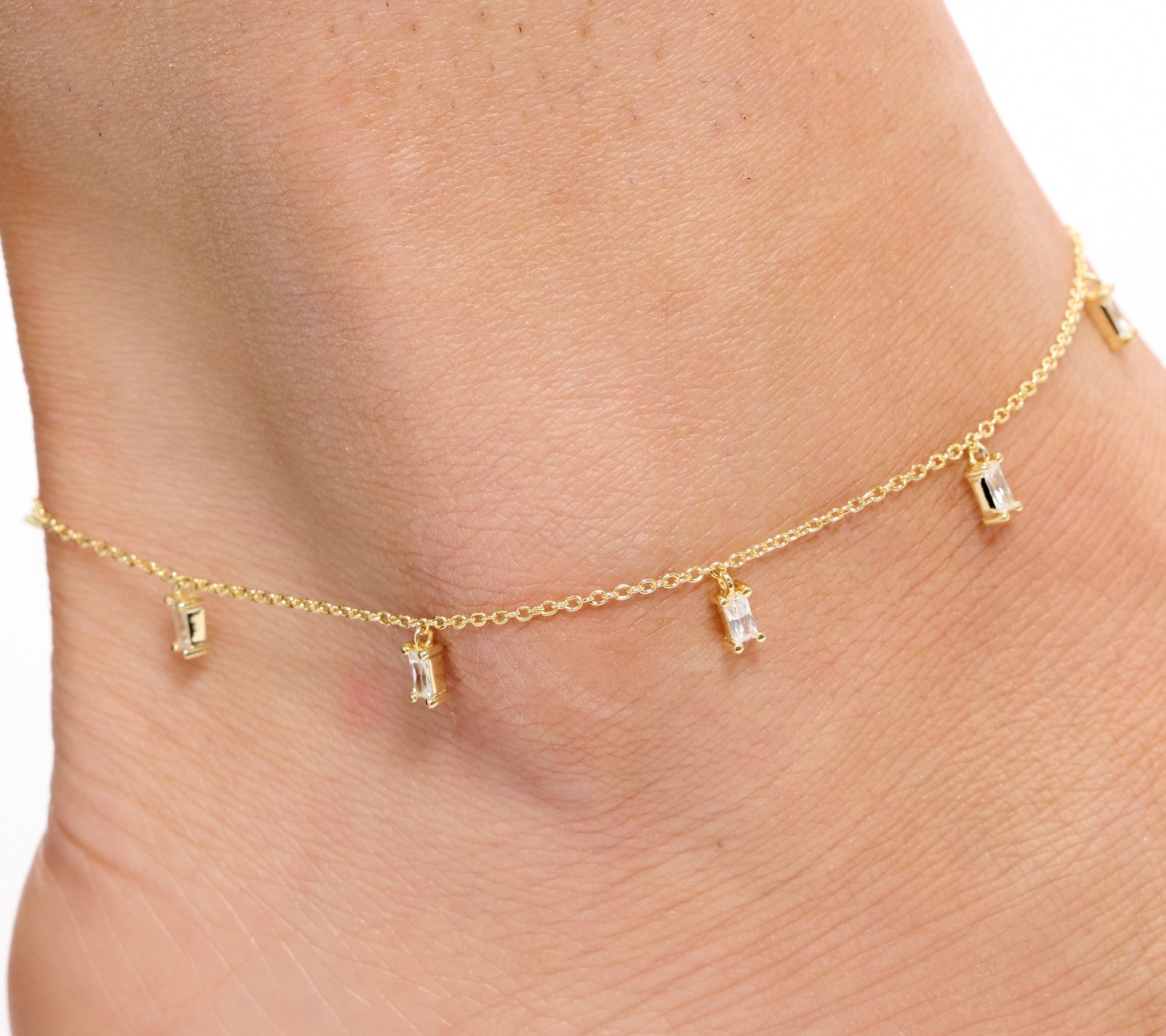 Finish your latest look with the gorgeous glam of this playful anklet. Shimmering emerald-cut cubic zirconia Diamonique simulated diamonds add sweet sparkle to your every step, whether you’re strolling the beach or dressing up for a night out.