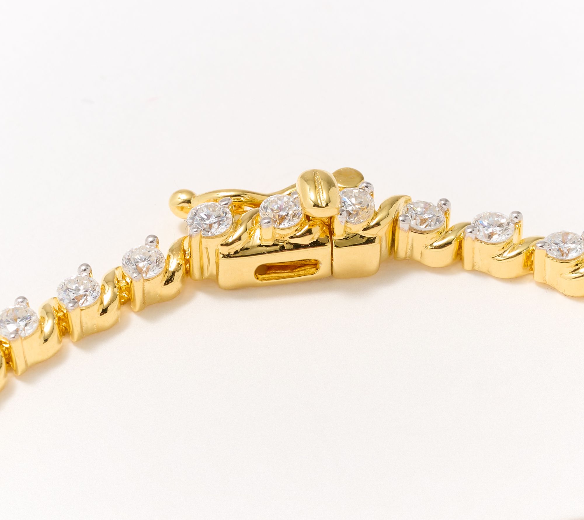 Tennis bracelet style with lab-grown diamonds in prong settings; polished finish