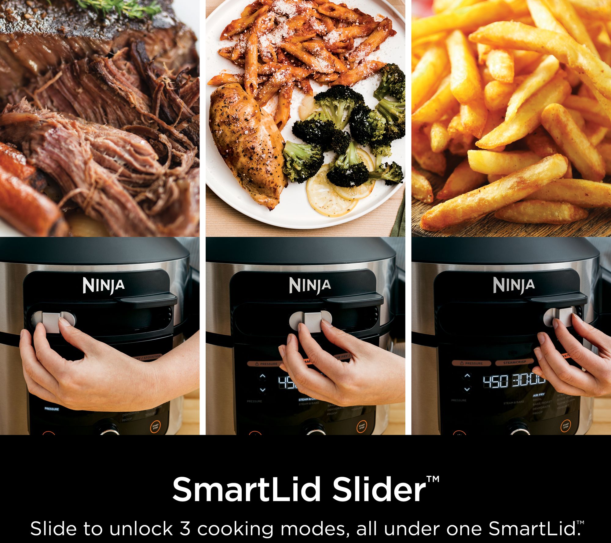 SmartLid Slider: unlocks pressure cooking, air frying, and steam crisping