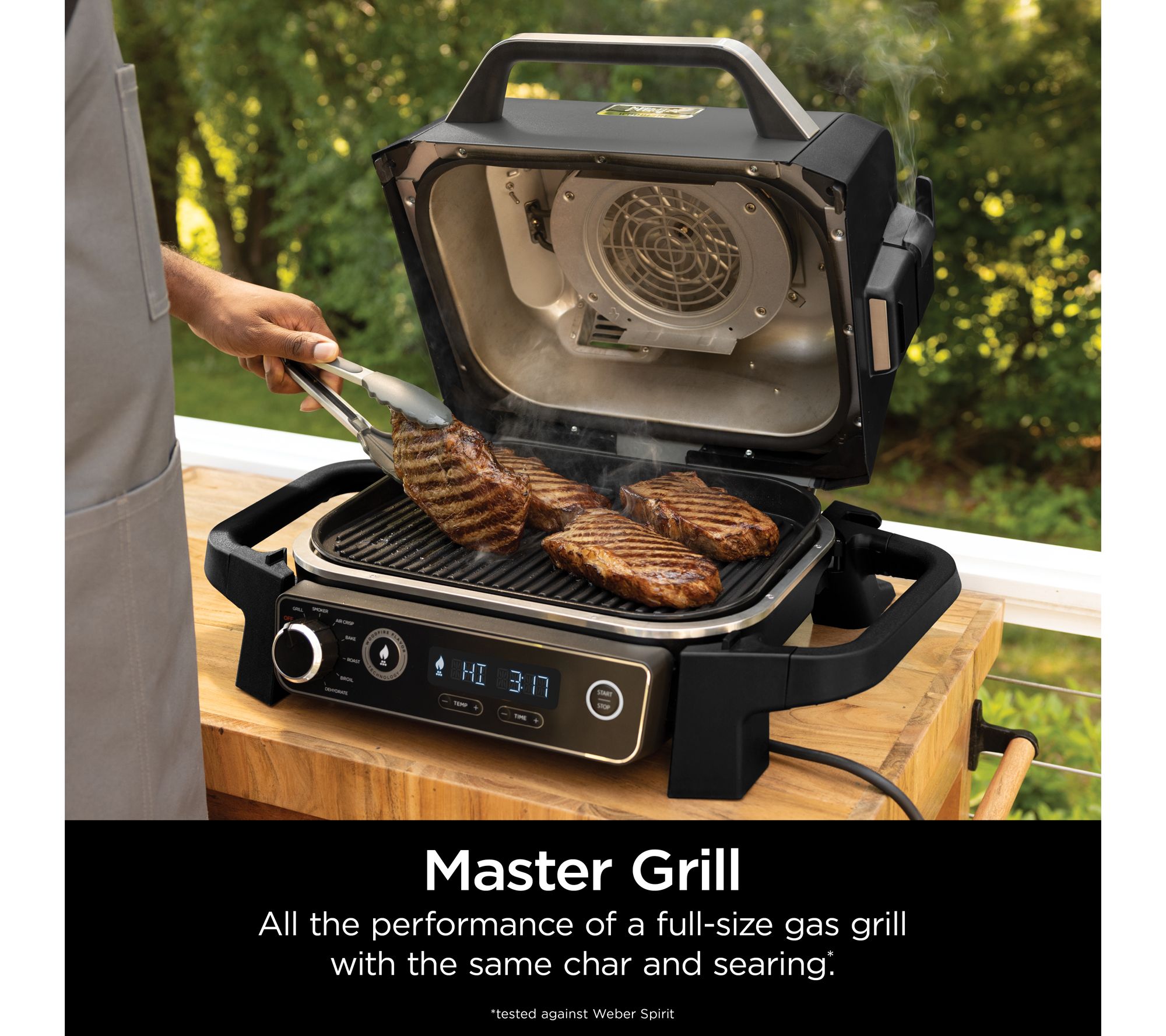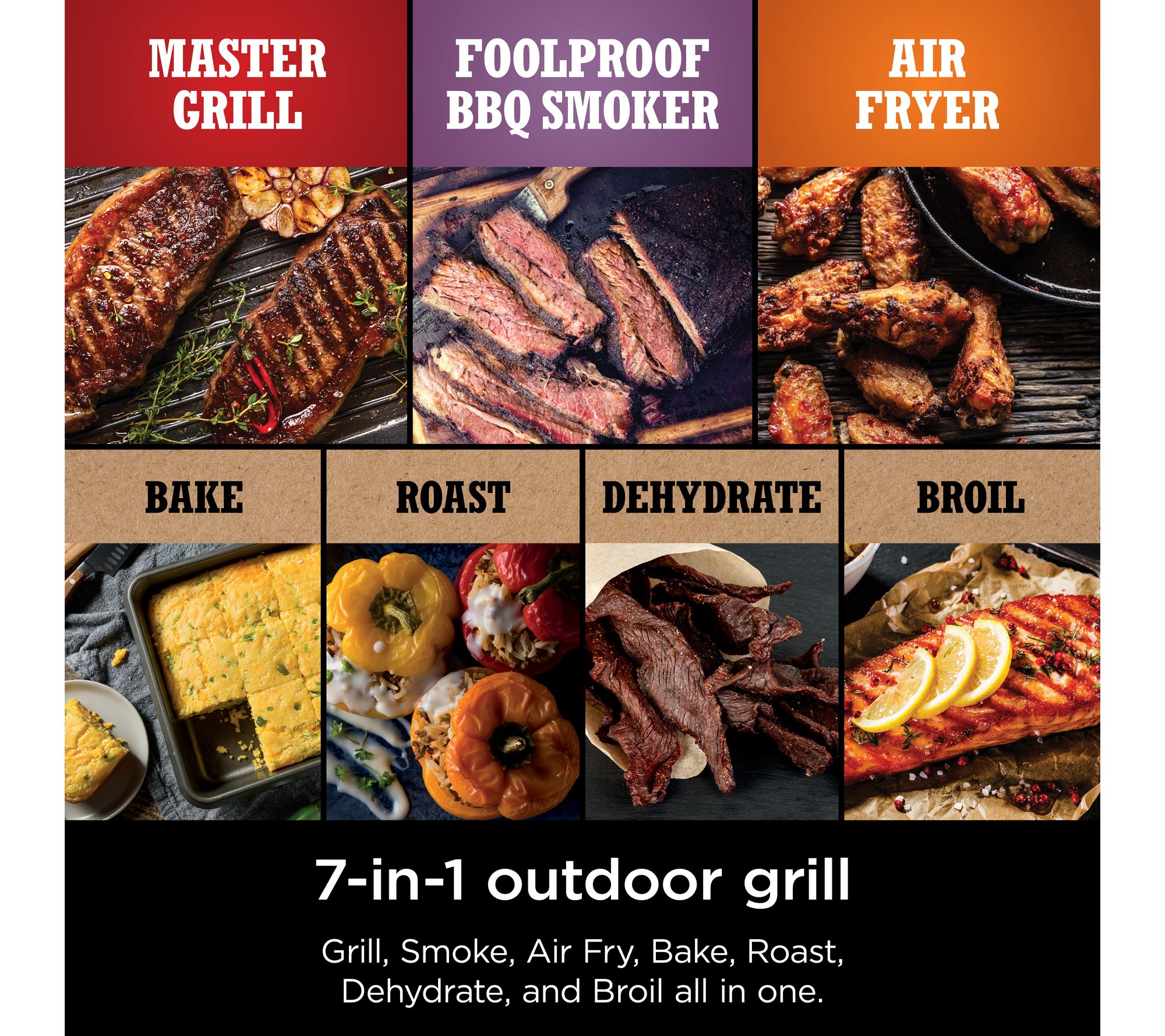 Seven functions: grill, smoke, air fry, bake, roast, dehydrate, broil