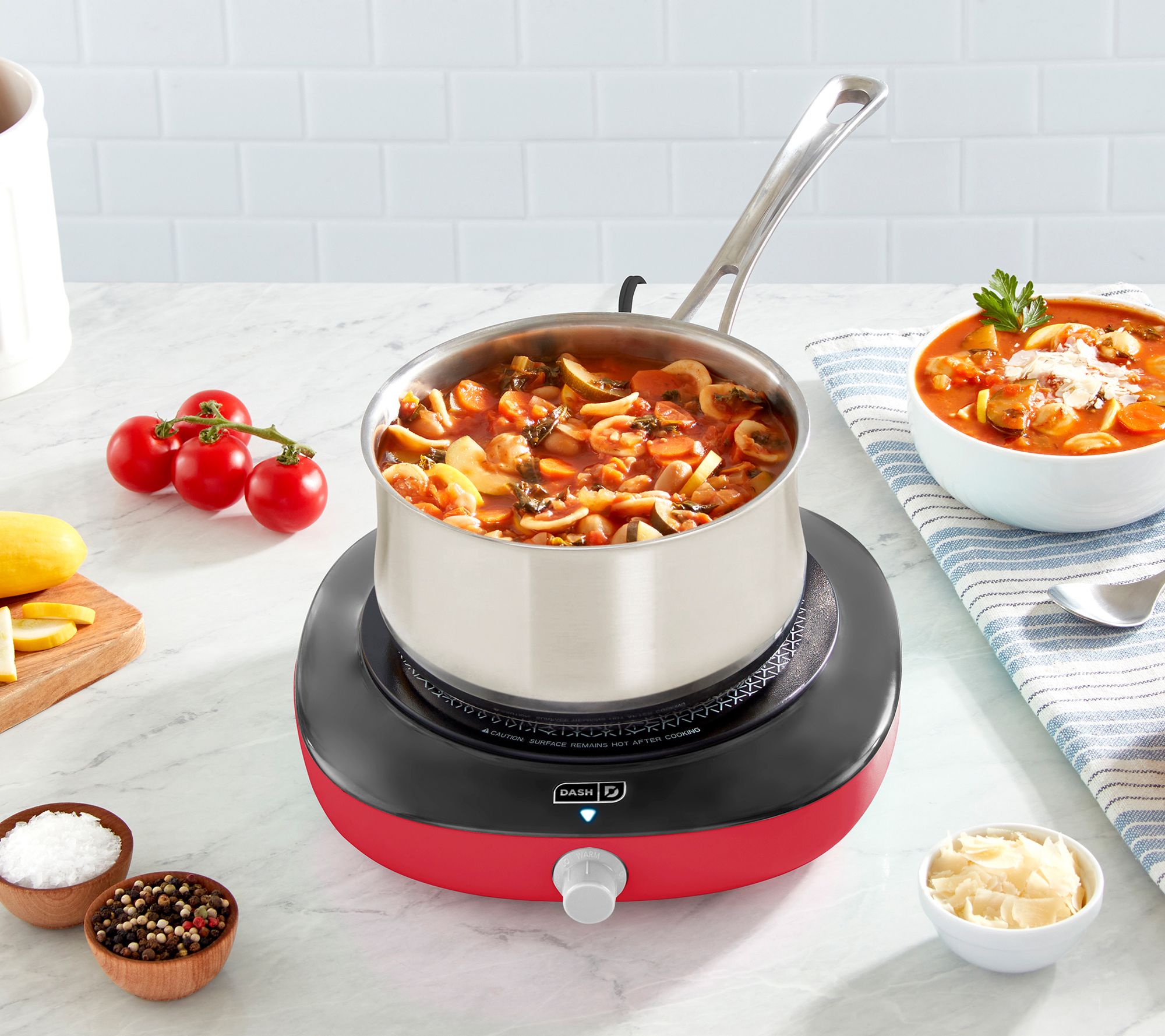Perfect for a small kitchen or for use as a handy additional burner, this electric cooktop can keep dishes warm, sear meat, and boil water. Small and portable, it's the ideal cooking solution for RVs, dorm rooms, or camping trips. From Dash.