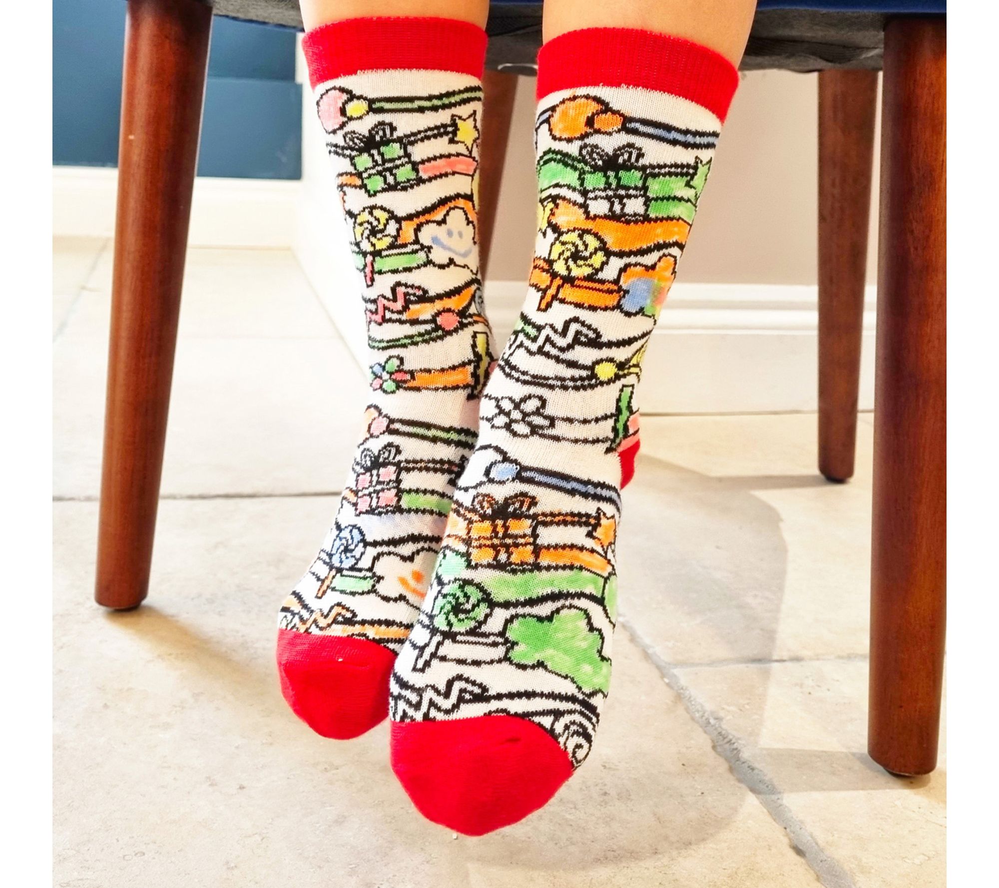 Bring creative flair to your child's wardrobe with these arts and crafts doodle socks. With three pairs and five fabric markers included, little artists can design personalized socks to match any mood or occasion. Ideal for sharing with friends or gifting to family, each finished pair turns playtime into a wearable showcase of imagination. From Buddy & Barney.