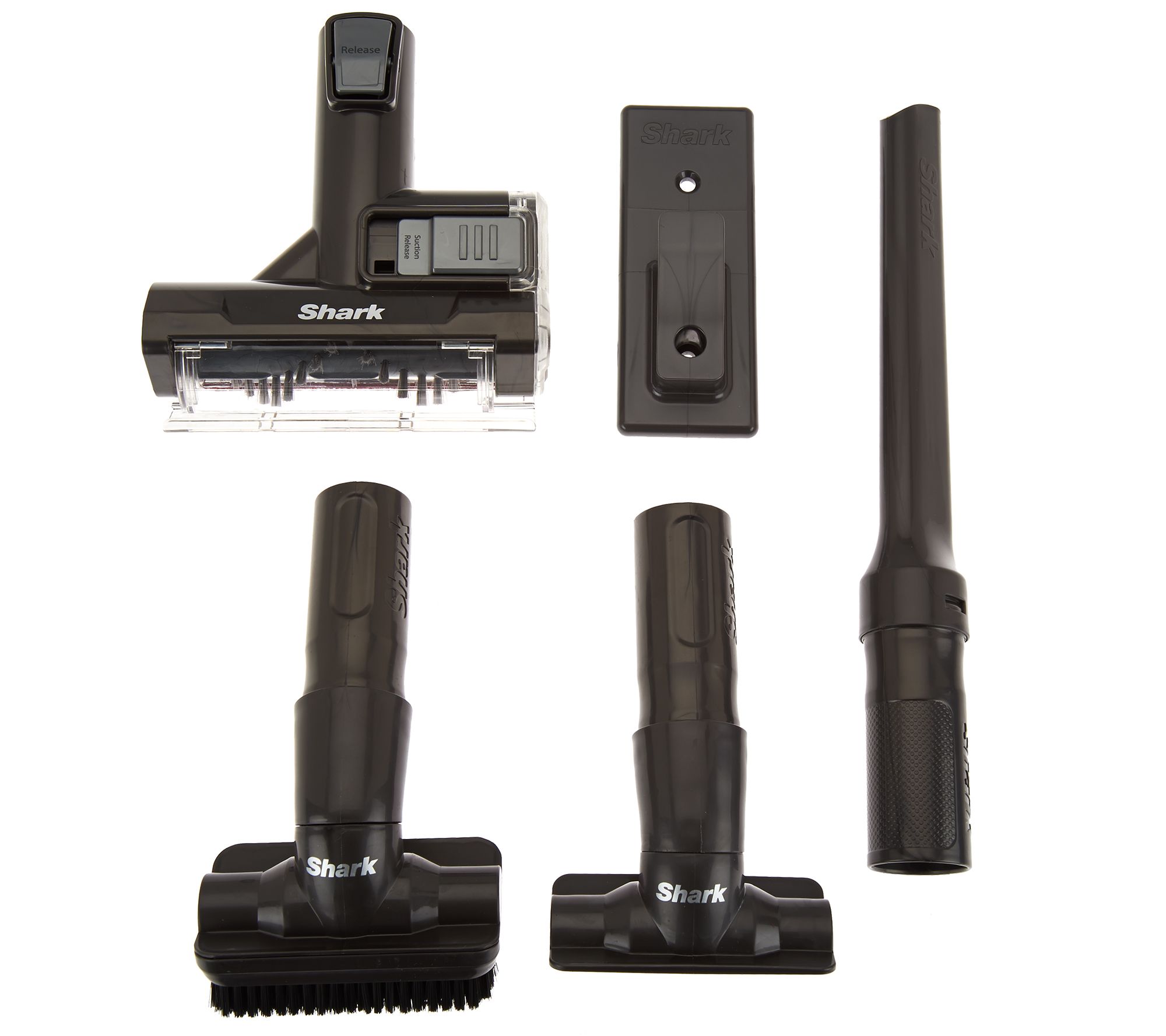 Includes Shark Rocket Deluxe Pro ultra light upright vacuum with powered brush roll, crevice tool, upholstery tool, dusting brush, Dust-Away hard-floor attachment with microfiber pad, mini motorized brush, home and car detail kit, on-board storage clip, wall mount, accessory bag, quick-start guide, and instruction manual