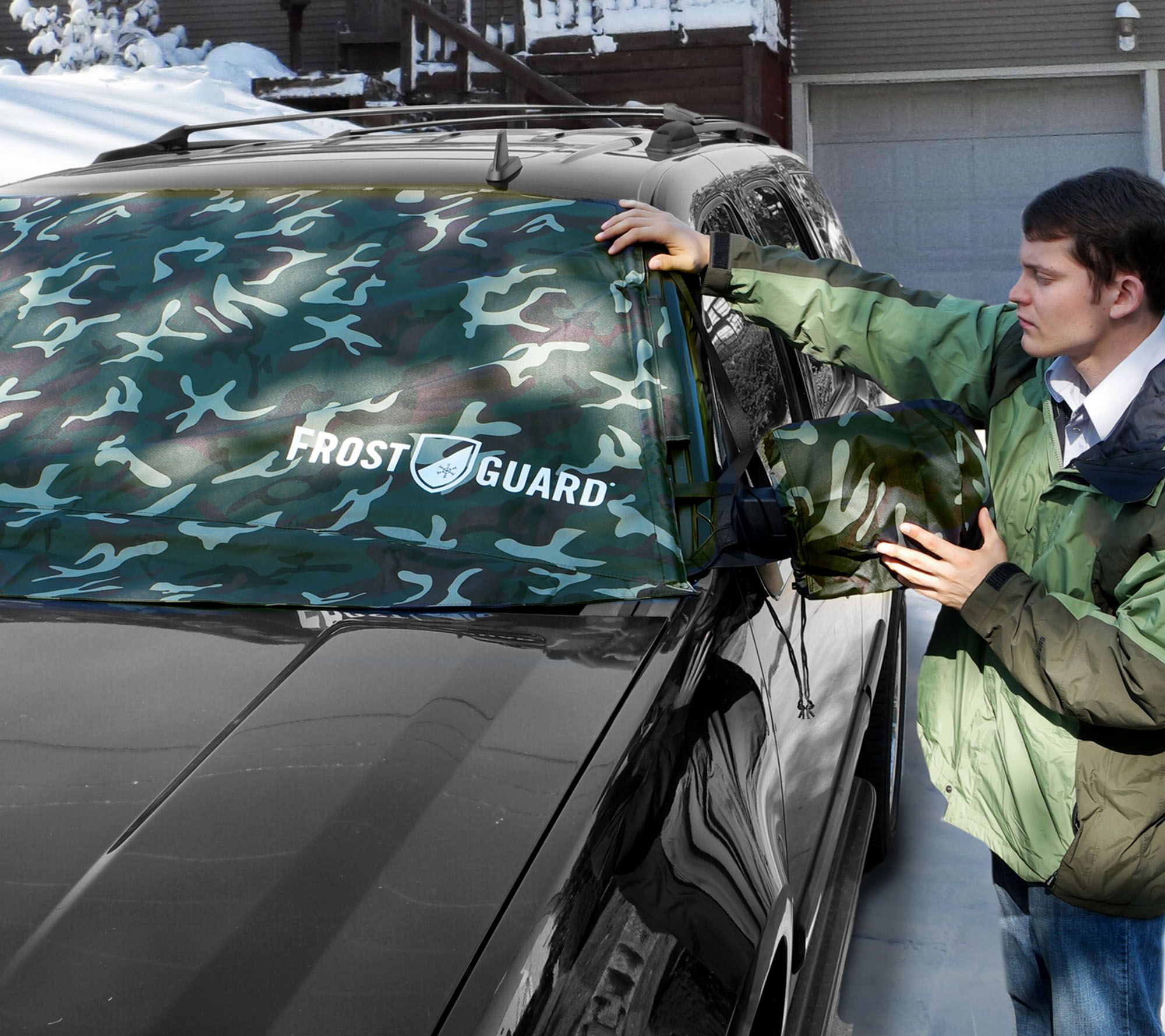 Getting out the door for your commute is hard enough--why add to the frustration by chipping frost off your car's windshield? FrostGuard lets you skip the scraping when frozen weather is in the forecast. Designed to cover your windshield from the wiper blades all the way up to the top, this FrostGuard(R) cover saves you valuable time--and stress. And thanks to its durable polyester construction, FrostGuard stands up to harsh winter weather.