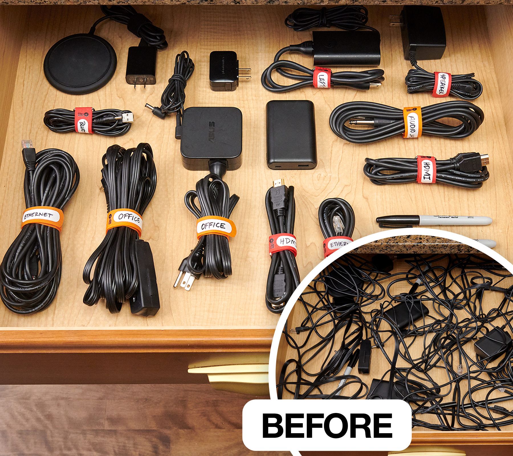 Your secret weapon for easy organization, these cinch straps and silicone bands help tackle junk drawers, tangled cords, and more.
