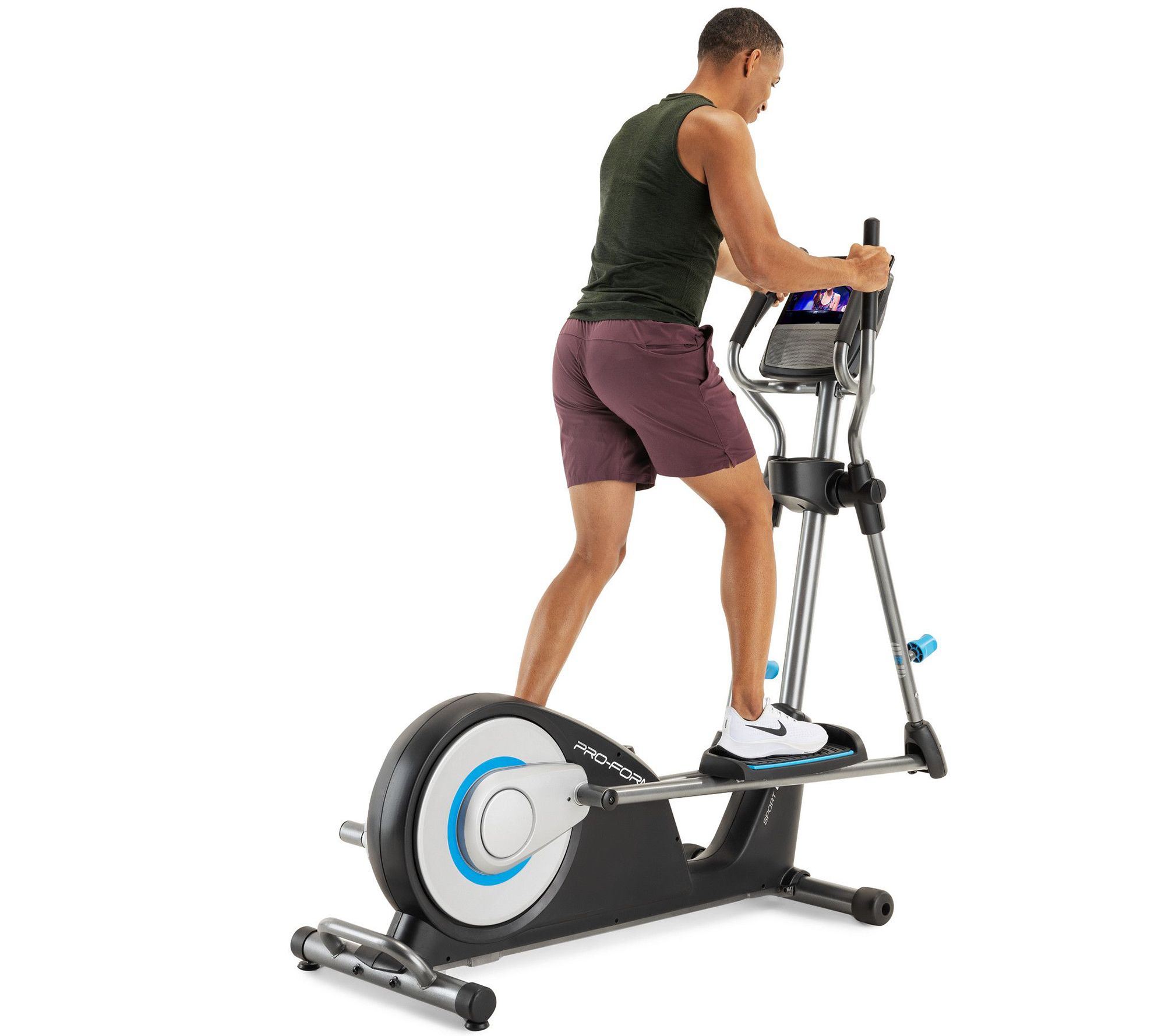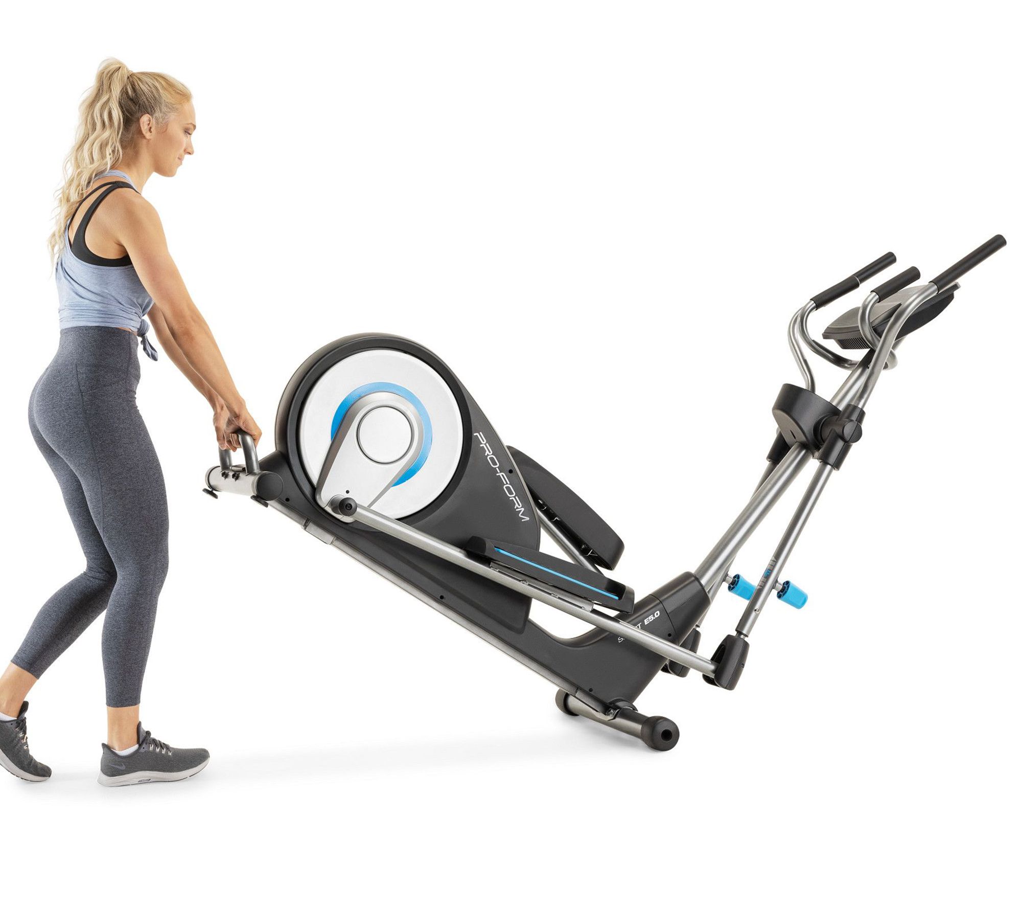 With a 16" stride length, 14 levels of resistance, cushioned pedals, auxiliary port, and a 5" display, this elliptical machine is a great addition to your home gym. From ProForm.