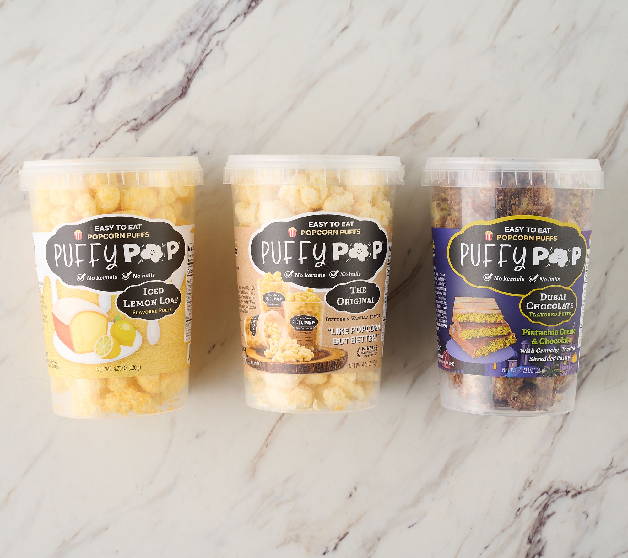 Gather friends or family and open up this trio of Puffy Pop puffed corn tubs, bursting with sweet and salty flavors you'll love. Each bite delivers that light, airy crunch -- making them ideal for movie marathons, game days, or sharing during afternoon snacking sessions. From Puffy Pop.